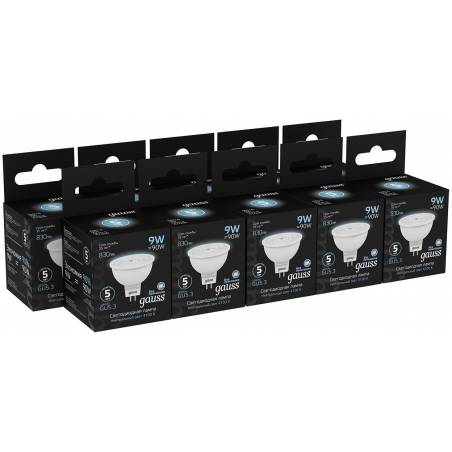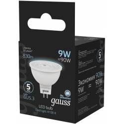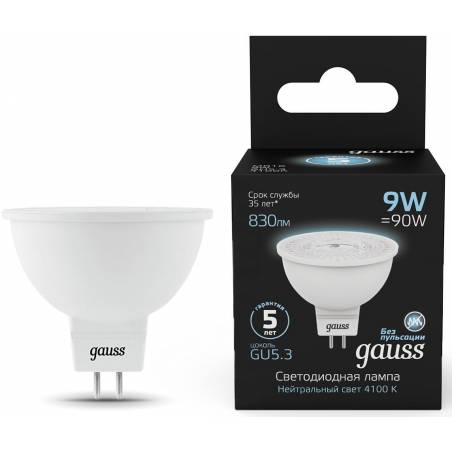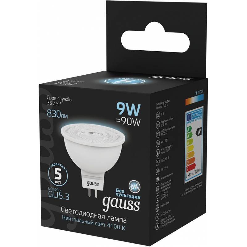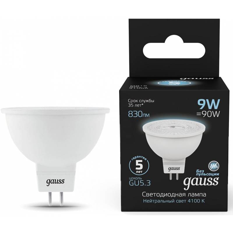 Лампа светодиодная Gauss 101505209 9Вт цок.:GU5.3 рефлек. 150B 4100K св.свеч.бел.нейт. MR16 (упак.:1шт)