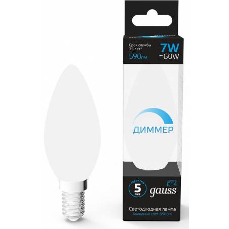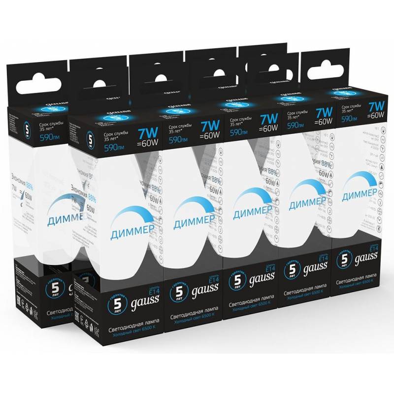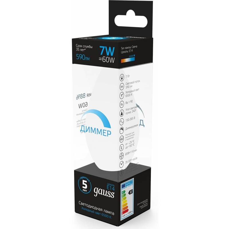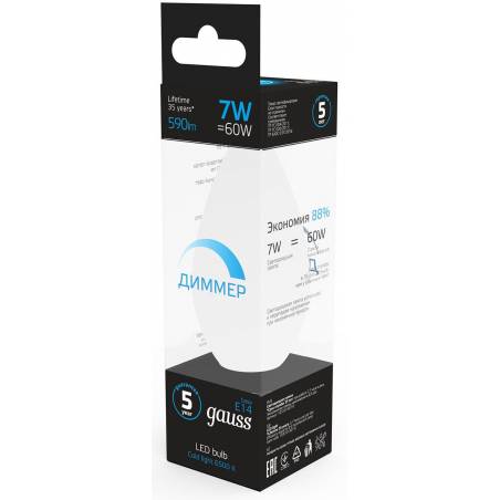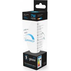 Лампа светодиодная Gauss 103101307-D 7Вт цок.:E14 свеча 150B 6500K св.свеч.бел.хол. (упак.:1шт)