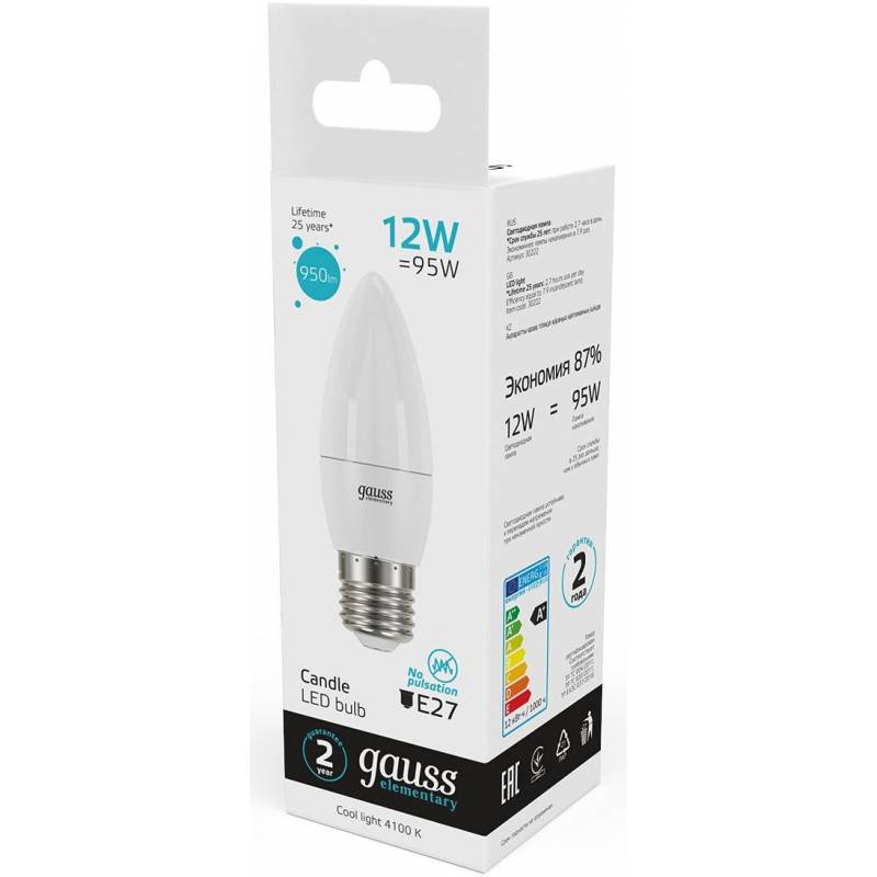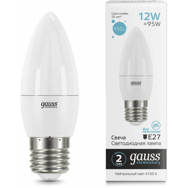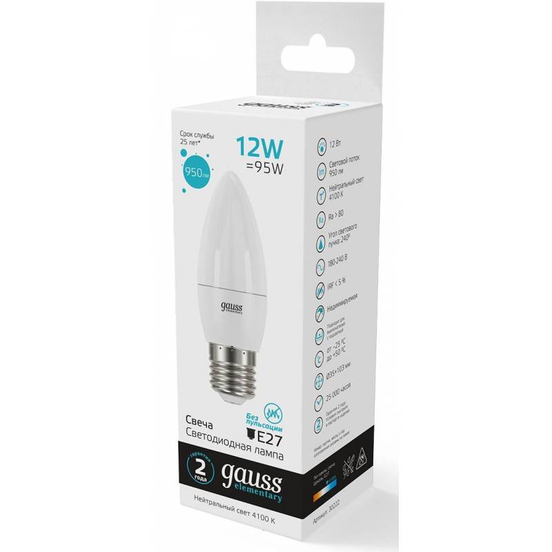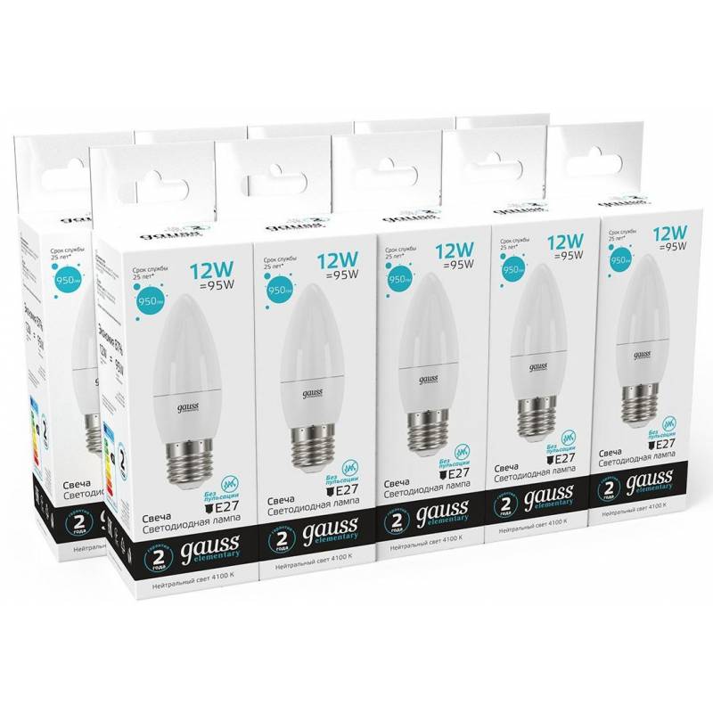Лампа светодиодная Gauss Elementary 30222 12Вт цок.:E27 свеча 220B 4100K св.свеч.бел.нейт. (упак.:10шт)
