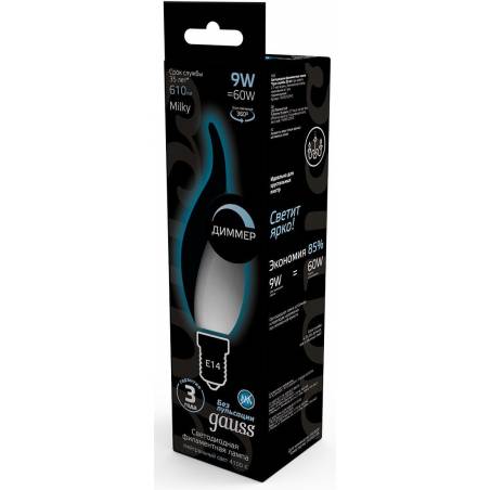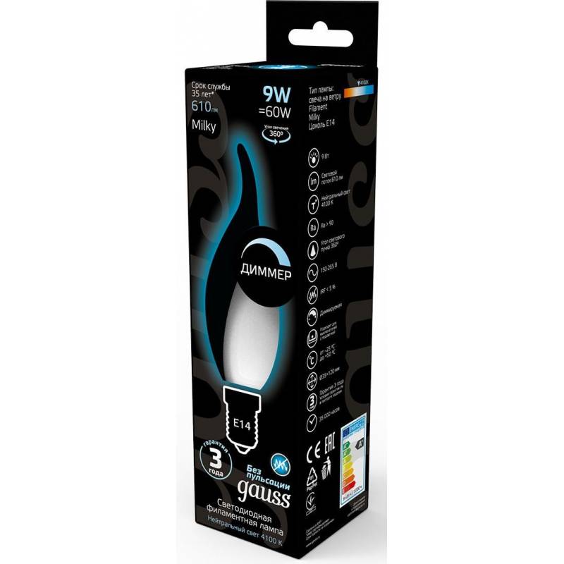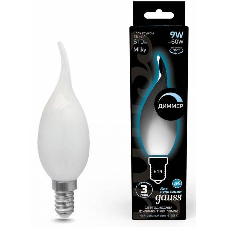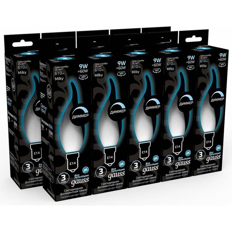 Лампа светодиодная Gauss Filament 104201209-D 9Вт цок.:E14 свеча 220B 4100K св.свеч.бел.нейт. (упак.:10шт)