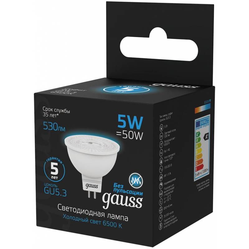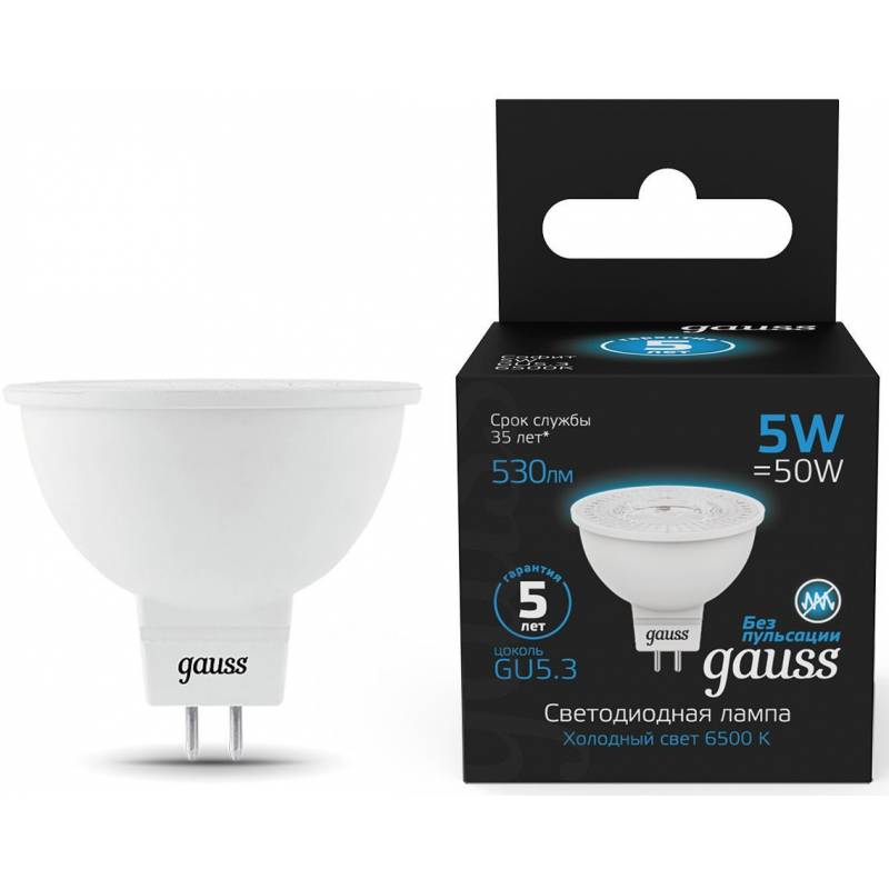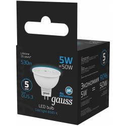 Лампа светодиодная Gauss 101505305 5Вт цок.:GU5.3 рефлек. 220B 6500K св.свеч.бел.хол. (упак.:10шт)