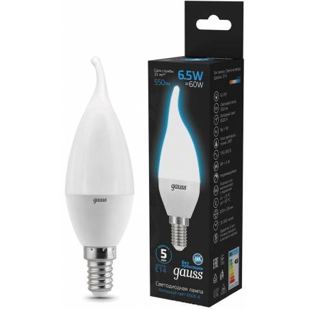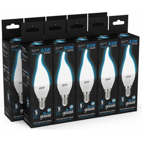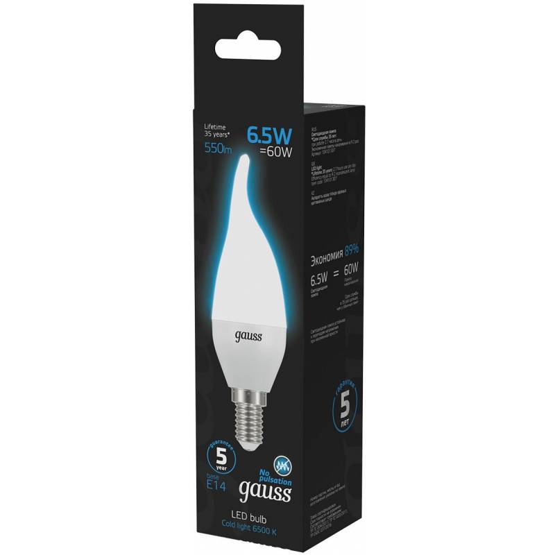 Лампа светодиодная Gauss 104101307 6.5Вт цок.:E14 свеча 220B 6500K св.свеч.бел.хол. (упак.:10шт)