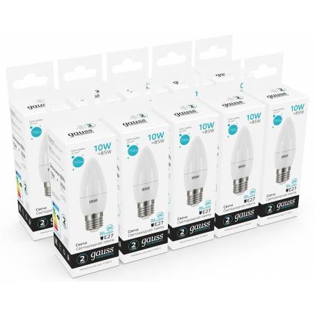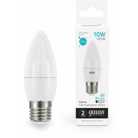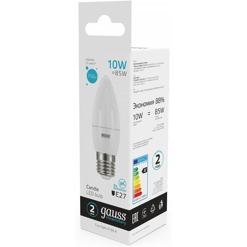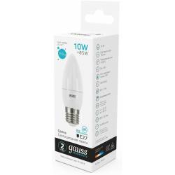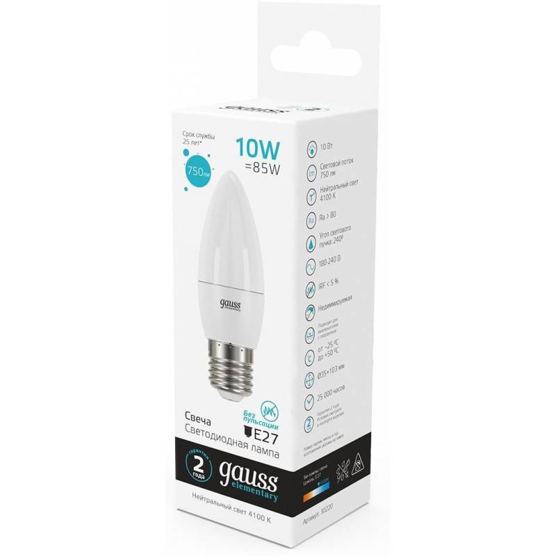 Лампа светодиодная Gauss Elementary 30220 10Вт цок.:E27 свеча 220B 4100K св.свеч.бел.нейт. (упак.:10шт)