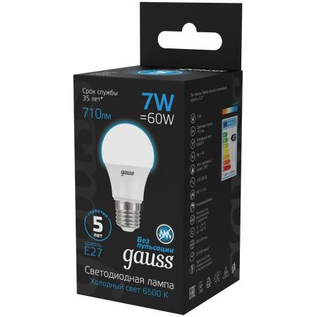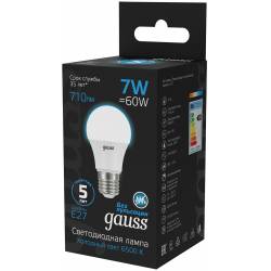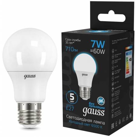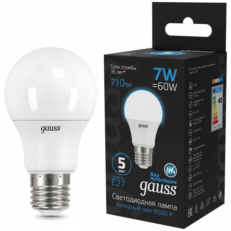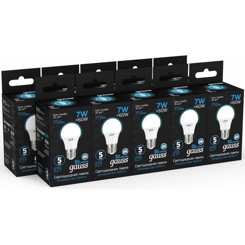 Лампа светодиодная Gauss 102502307 7Вт цок.:E27 груша 220B 6500K св.свеч.бел.хол. (упак.:10шт)