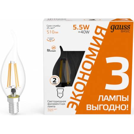 - Светодиодные филаментные лампы GAUSS - это новейшие технологии в светотехнике. Лампы имеют привычный вид классических ламп накаливания, освещают пространство на 360 град. и дают больше света по сравнению с обычными светодиодными лампами за счет прозрачно
