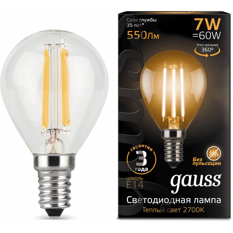 - Светодиодная лампа Gauss - самый безопасный для здоровья и окружающей среды источник света. Она не пульсирует, мгновенно включается, не содержит ртути, и имеет больший срок службы, чем лампы накаливания и КЛЛ.