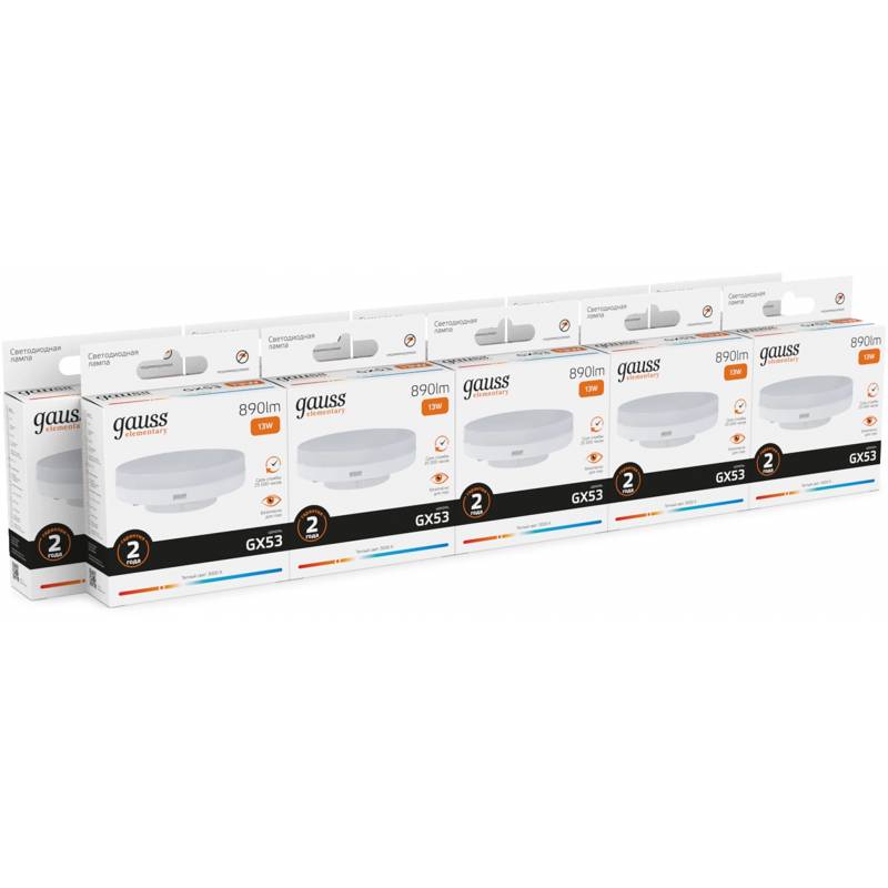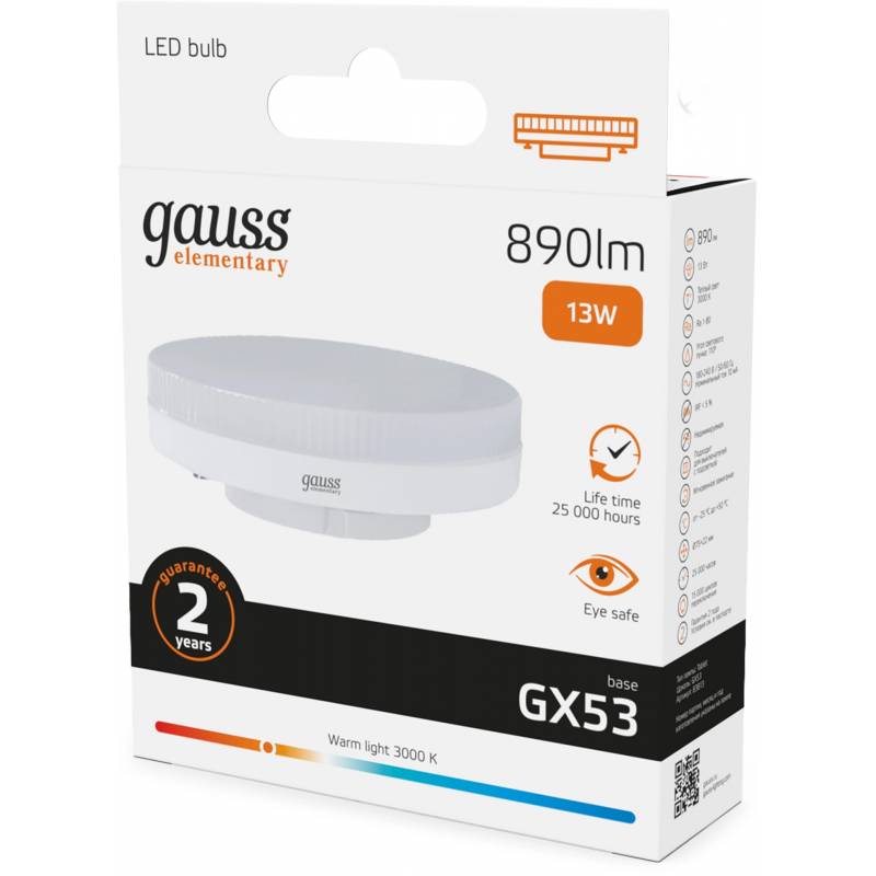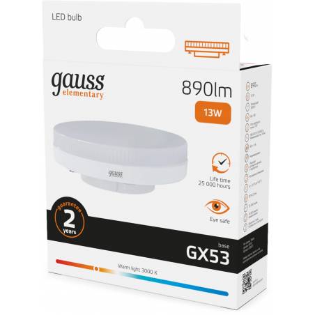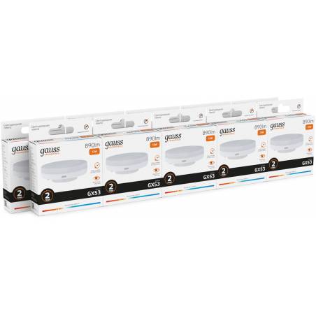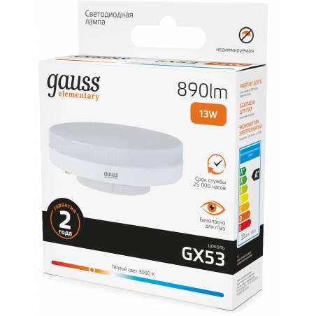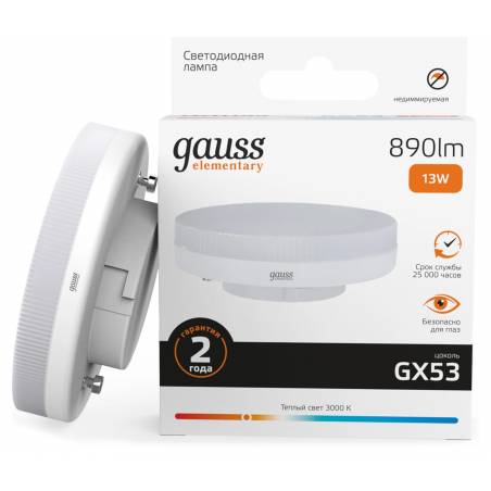 Лампа светодиодная Gauss Elementary 13Вт цок.:GX53 таблетка 220B св.свеч.бел.теп. Tablet (упак.:10шт) (83813)