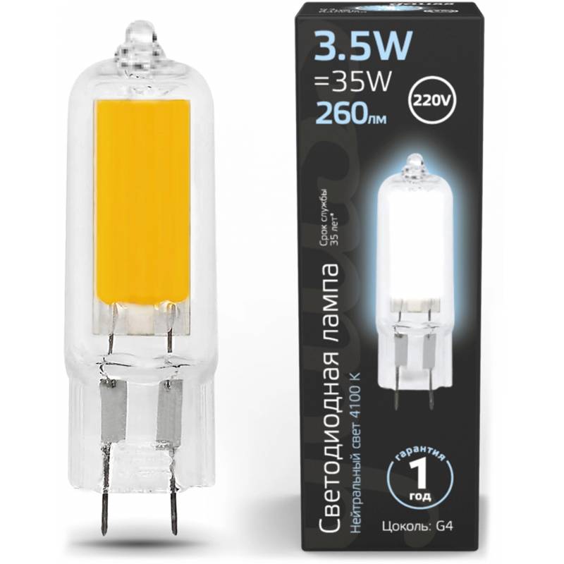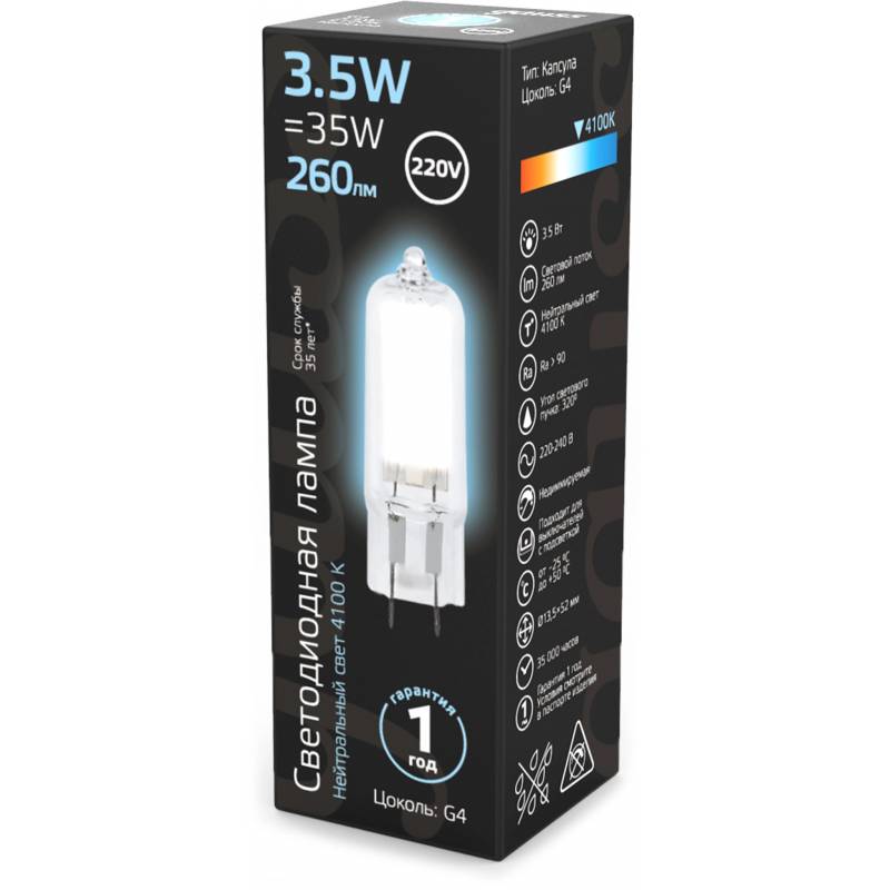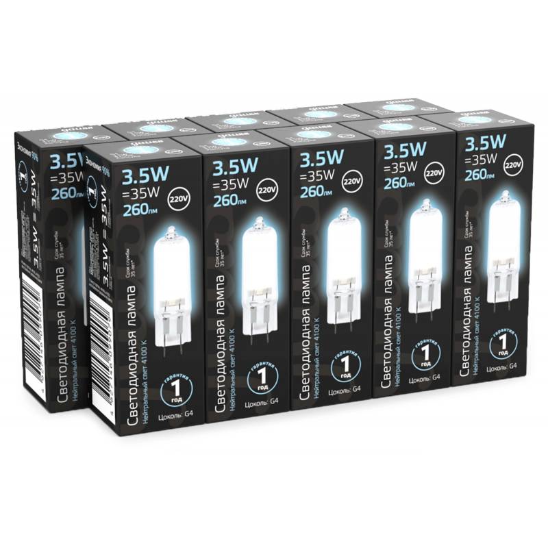 Лампа светодиодная Gauss G4 3.5Вт цок.:G4 капсул. 220B св.свеч.бел.нейт. (упак.:10шт) (107807203)