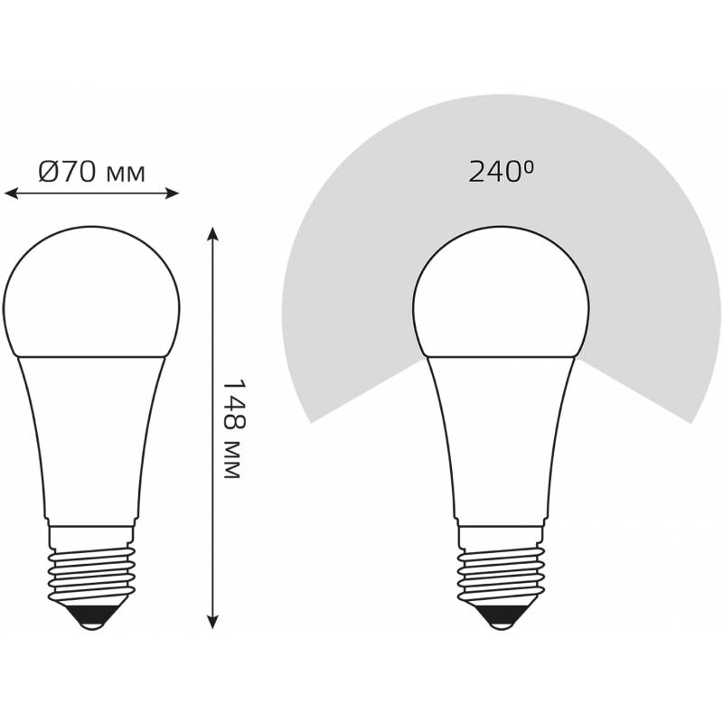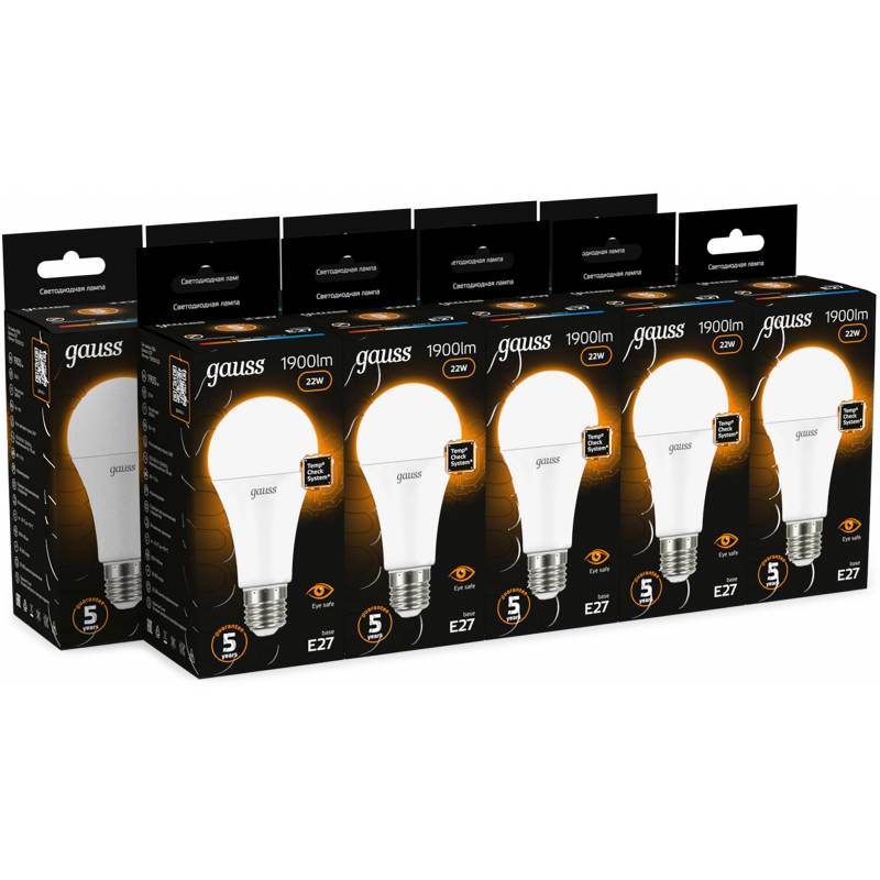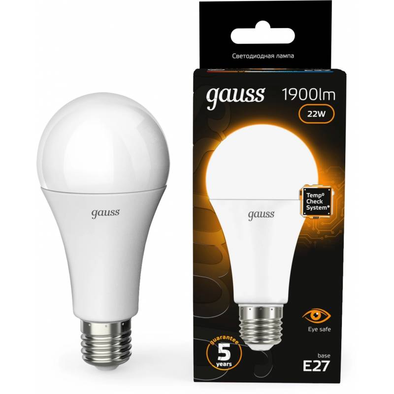 Лампа светодиодная Gauss A70 22Вт цок.:E27 груша 220B св.свеч.бел.теп. (упак.:10шт) (102502122)