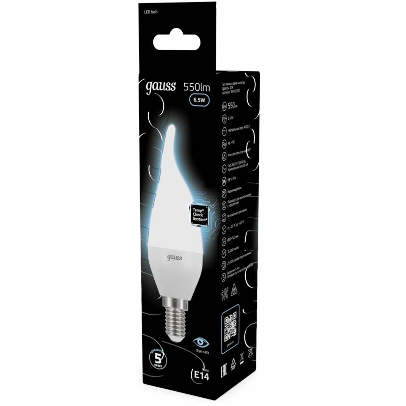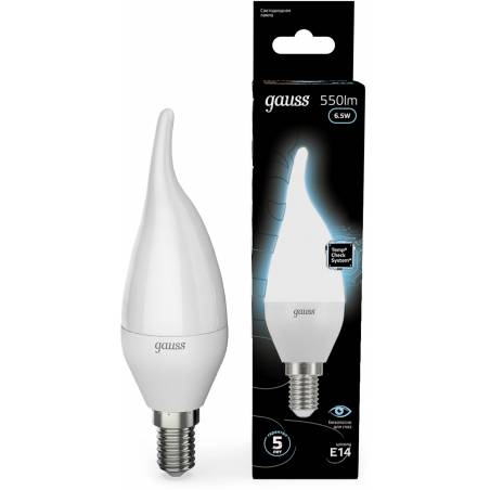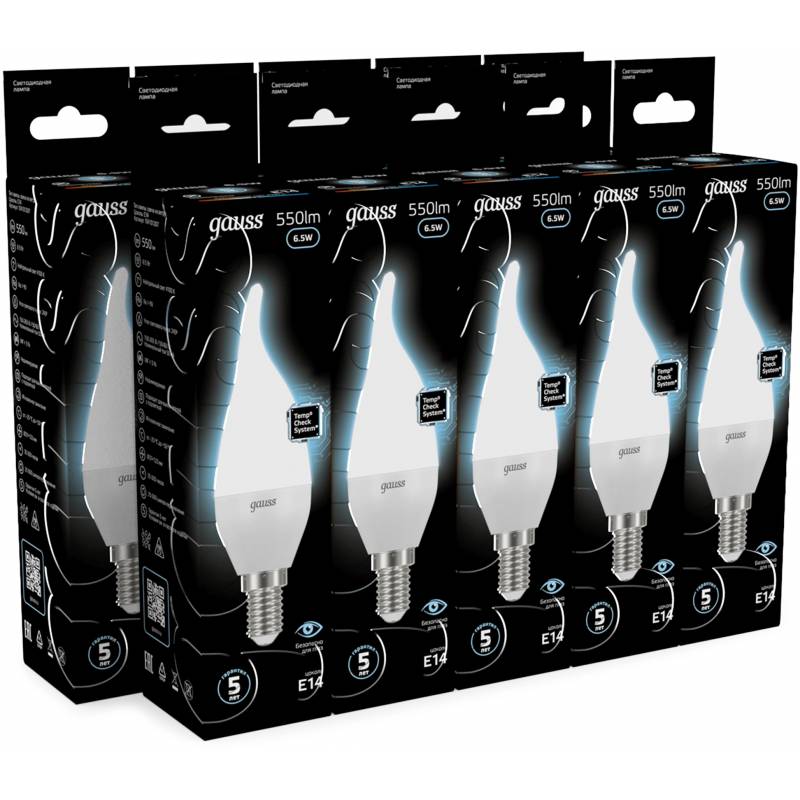 Лампа светодиодная Gauss 6.5Вт цок.:E14 свеча 220B св.свеч.бел.нейт. (упак.:10шт) (104101207)