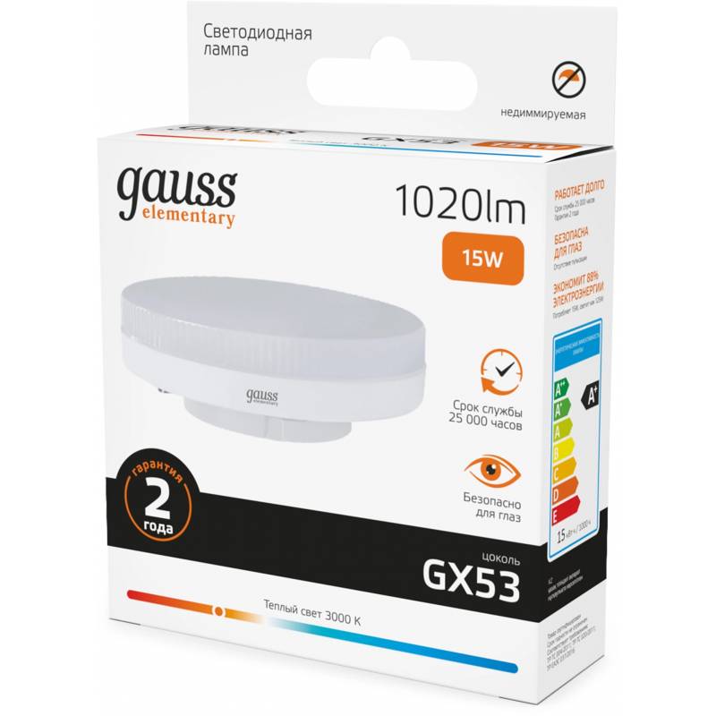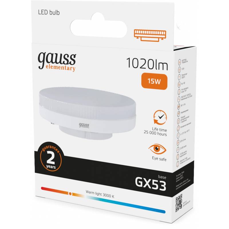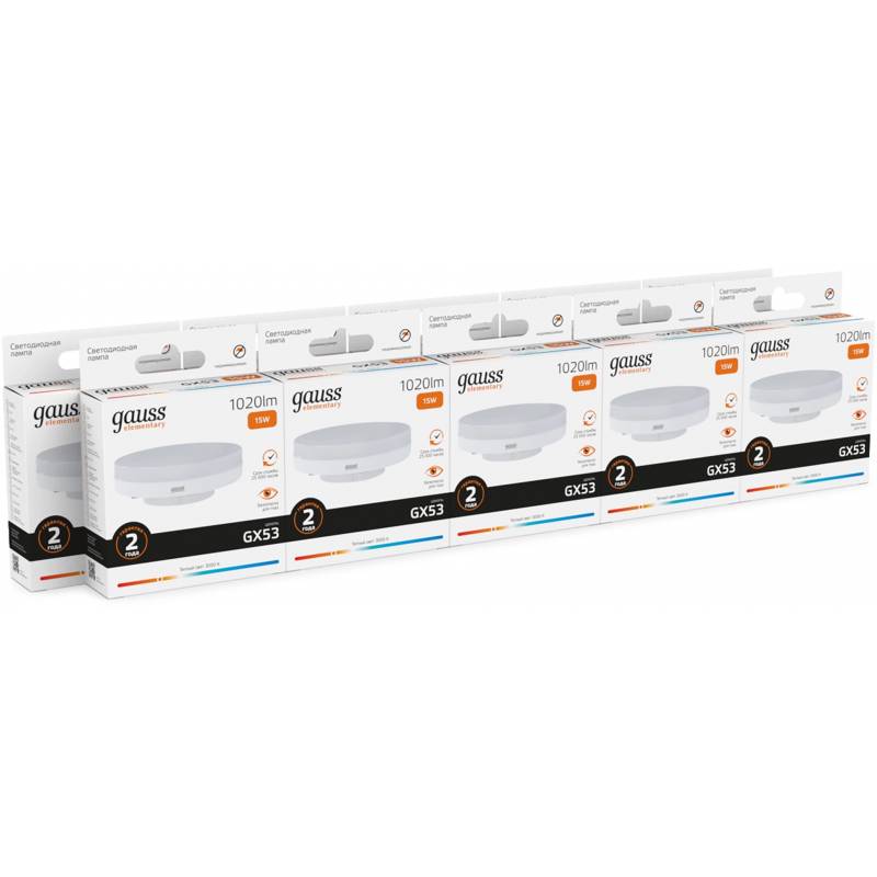 Лампа светодиодная Gauss Elementary 15Вт цок.:GX53 таблетка 220B св.свеч.бел.теп. (упак.:10шт) (83815)