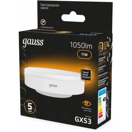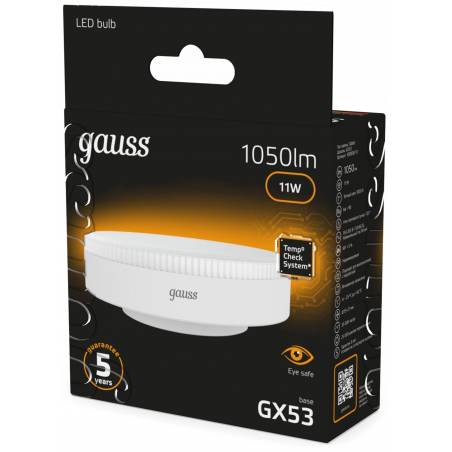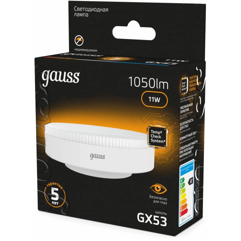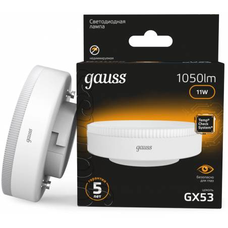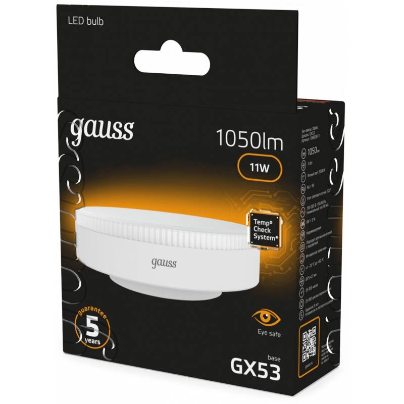 Лампа светодиодная Gauss 108008111 11Вт цок.:GX53 таблетка 220B св.свеч.бел.теп. (упак.:10шт)