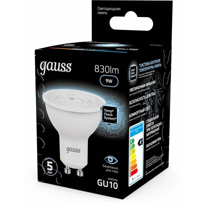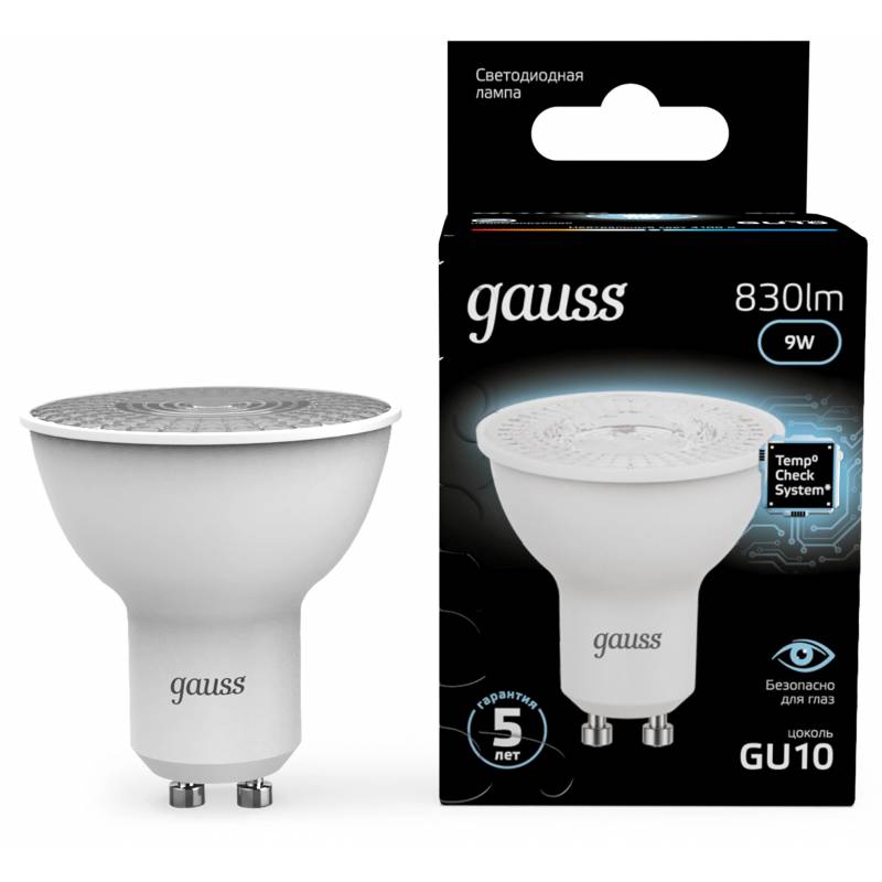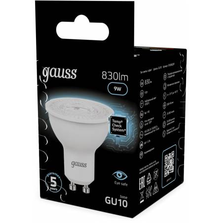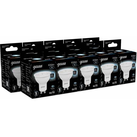 Лампа светодиодная Gauss 101506209 9Вт цок.:GU10 рефлек. 220B св.свеч.бел.нейт. MR16 (упак.:10шт)