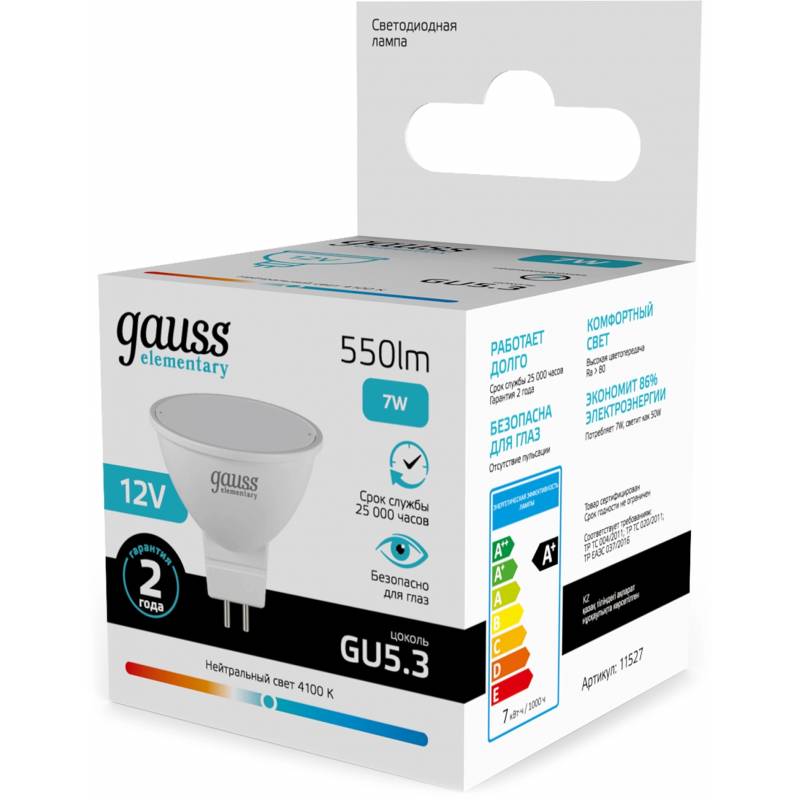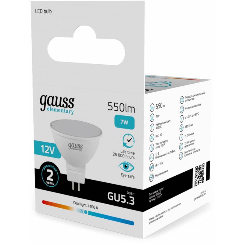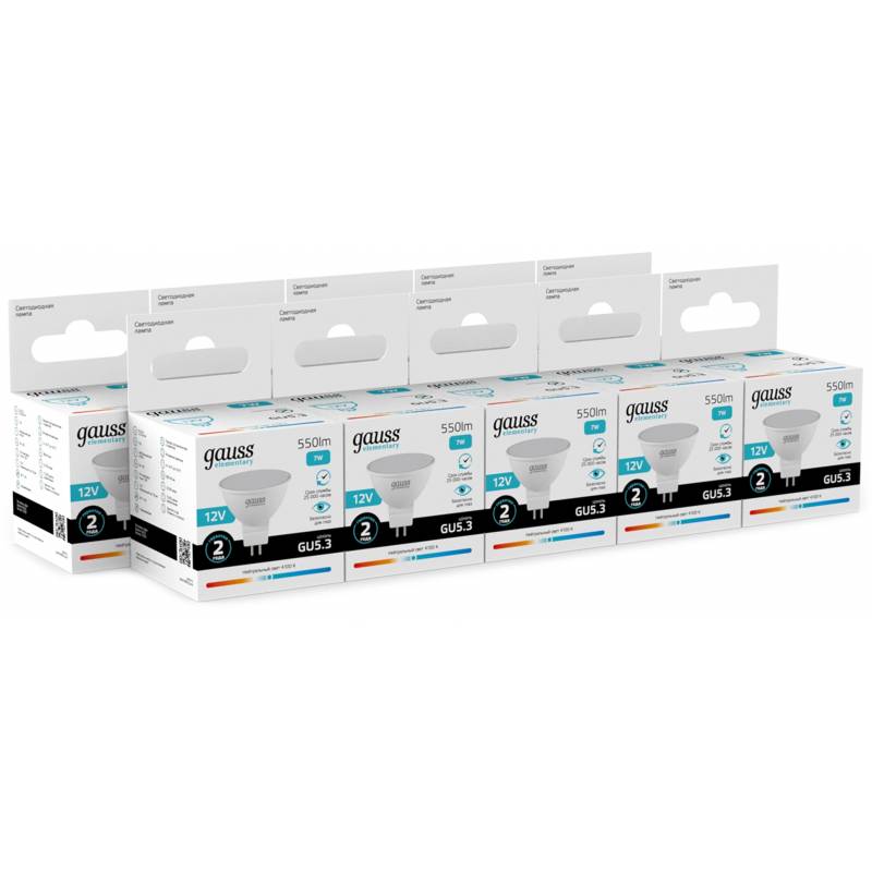 Лампа светодиодная Gauss Elementary 7Вт цок.:GU5.3 софит 12B св.свеч.бел.нейт. (упак.:10шт) (11527)