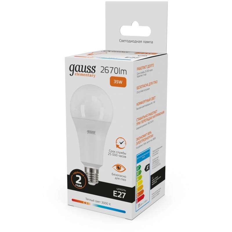 Лампа светодиодная Gauss Globe Elementary 35Вт цок.:E27 груша 220B 3000K св.свеч.бел.теп. А67 (упак.:1шт) (70215)