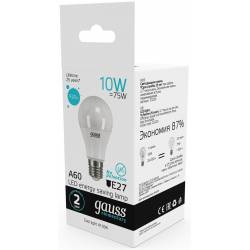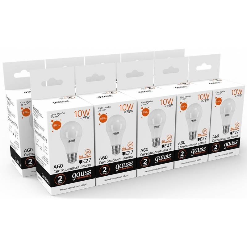Лампа светодиодная Gauss Elementary 10Вт цок.:E27 груша 220B 4100K св.свеч.бел.нейт. A60 (упак.:10шт) (23220)