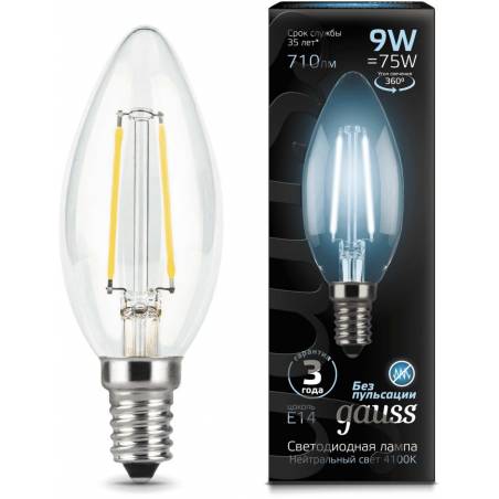 Лампа филам. Gauss Filament 9Вт цок.:E14 свеча 220B 4100K св.свеч.бел.нейт. С35 (упак.:1шт) (103801209)
