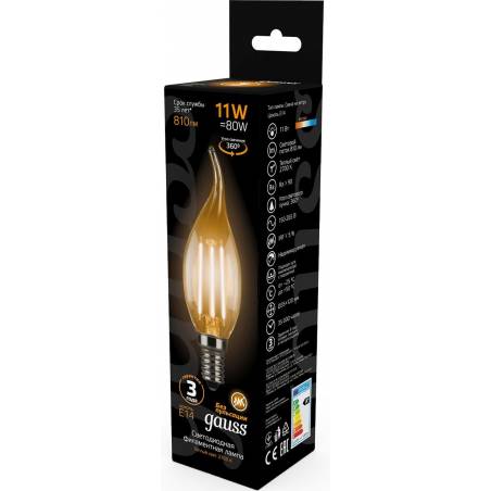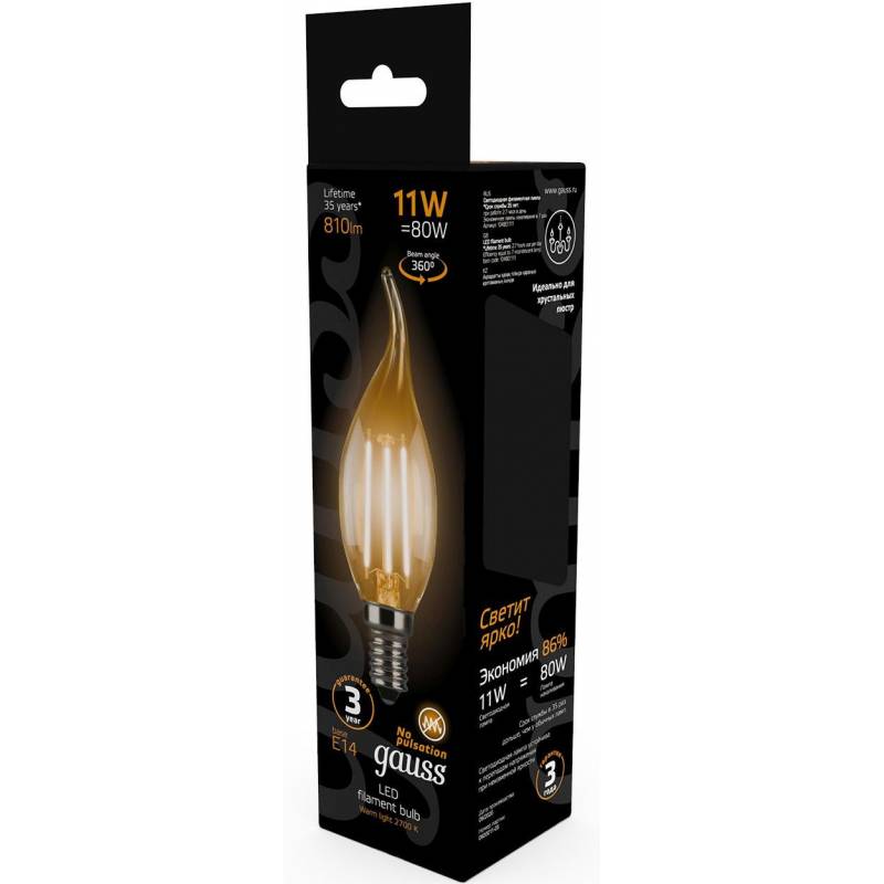 Лампа филам. Gauss Filament 11Вт цок.:E14 свеча 220B 2700K св.свеч.бел.теп. CF35 (упак.:1шт) (104801111)