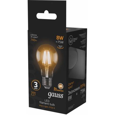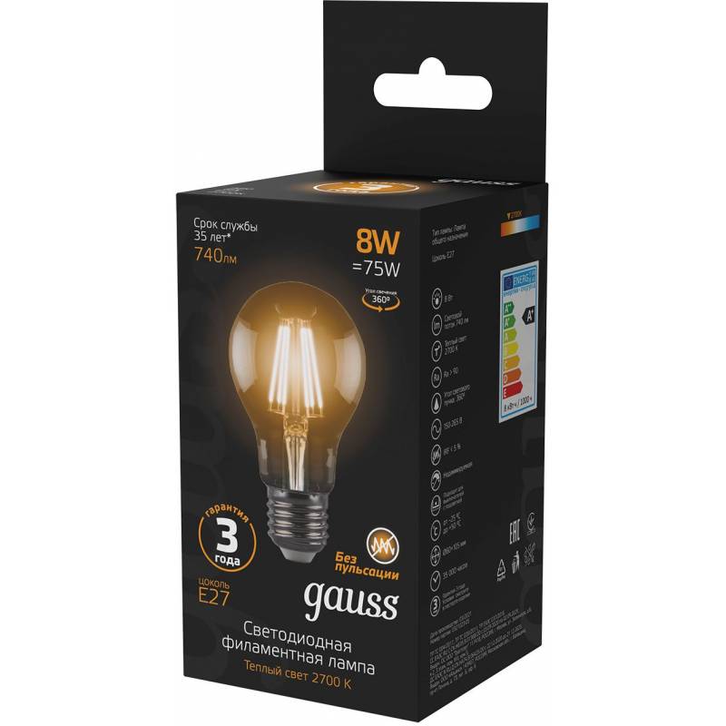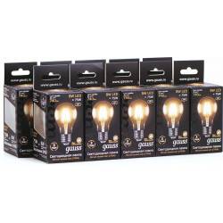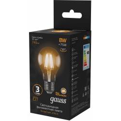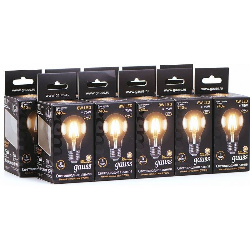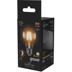 Лампа филам. Gauss 8Вт цок.:E27 шар 220B 2700K св.свеч.бел.теп. A60 (упак.:10шт) (102802108)