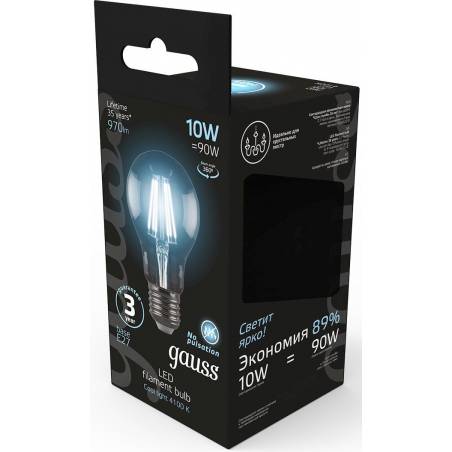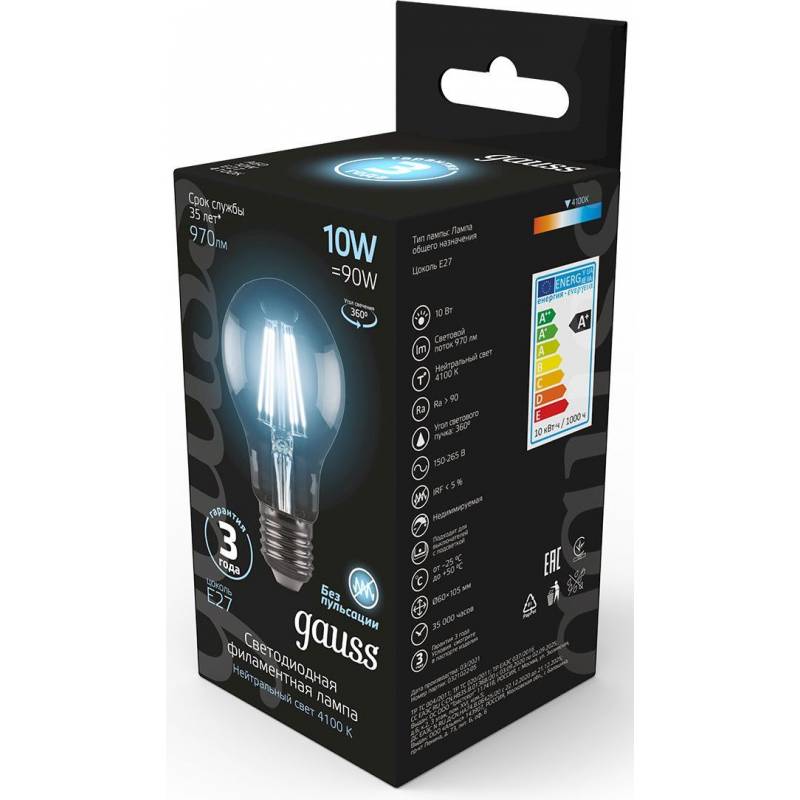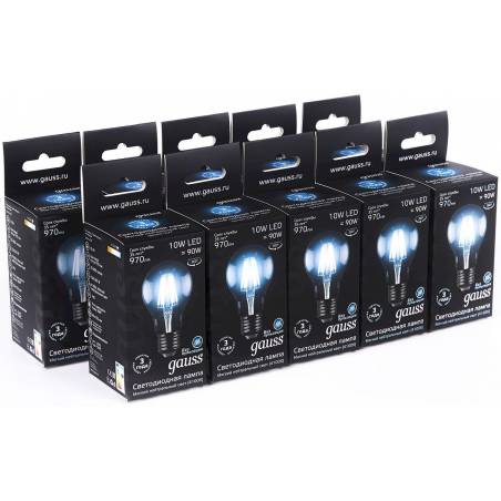 Лампа филам. Gauss 10Вт цок.:E27 шар 220B 4100K св.свеч.бел.нейт. A60 (упак.:10шт) (102802210)