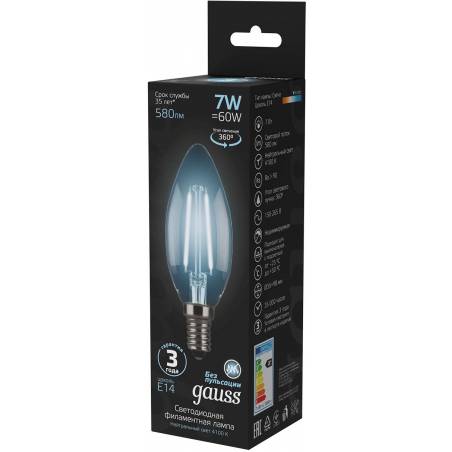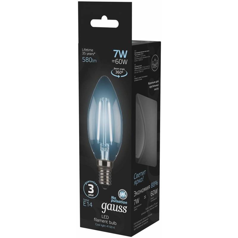 Лампа филам. Gauss 7Вт цок.:E14 свеча 220B 4100K св.свеч.бел.нейт. C37 (упак.:10шт) (103801207)