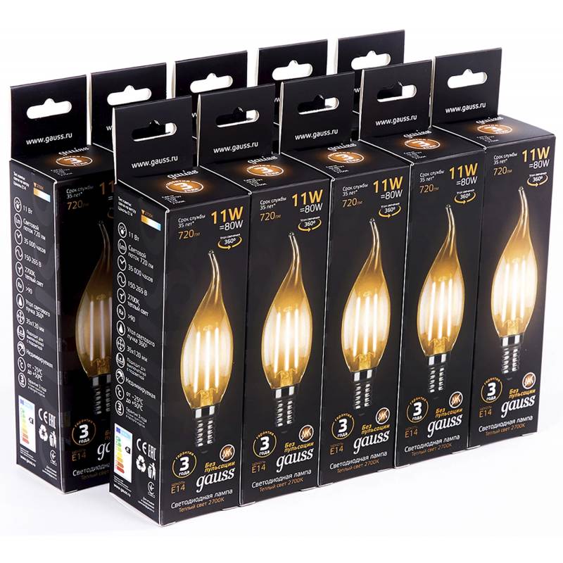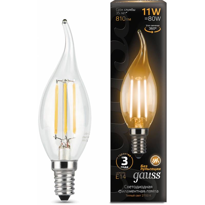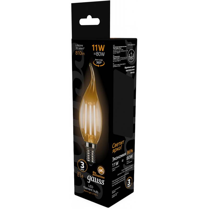 Лампа филам. Gauss Filament 11Вт цок.:E14 свеча 220B св.свеч.бел.теп. CF35 (упак.:10шт) (104801111)