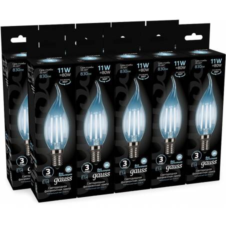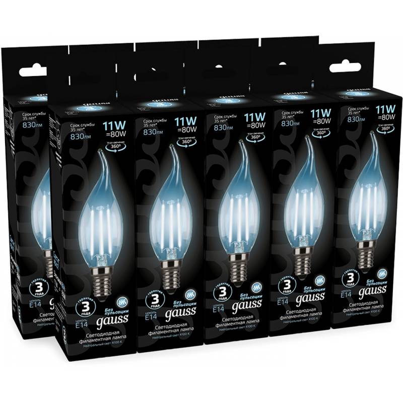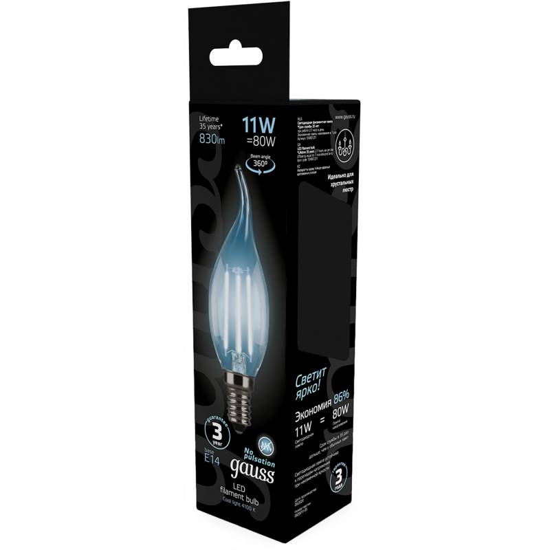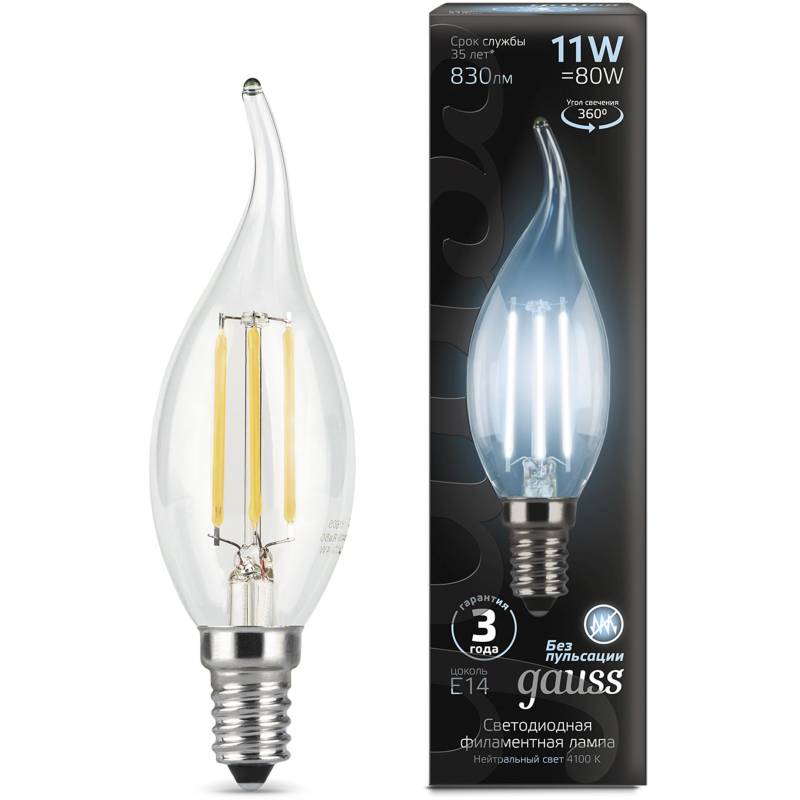 Лампа филам. Gauss Filament 11Вт цок.:E14 свеча 220B св.свеч.бел.нейт. CF35 (упак.:10шт) (104801211)