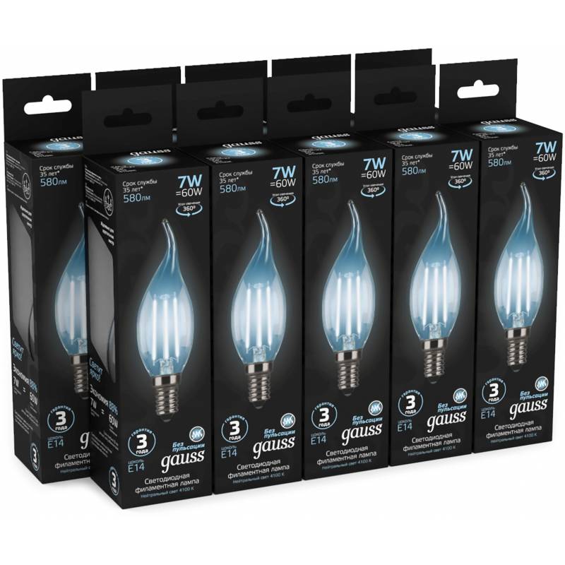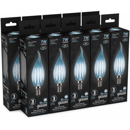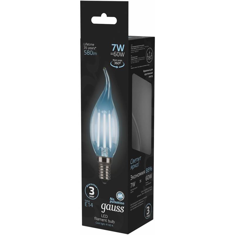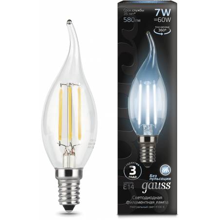 Лампа филам. Gauss Filament 7Вт цок.:E14 свеча 220B св.свеч.бел.нейт. CF35 (упак.:10шт) (104801207)
