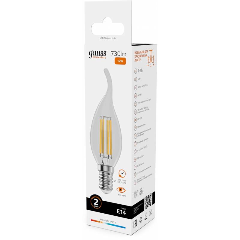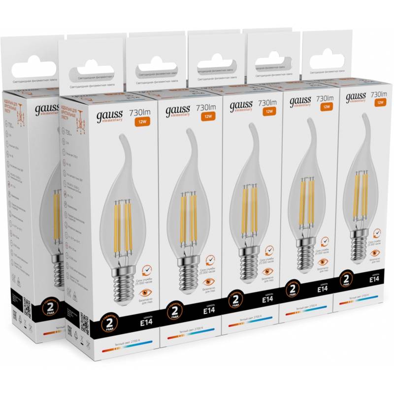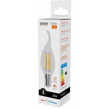 Лампа филам. Gauss Filament 12Вт цок.:E14 свеча 220B св.свеч.бел.теп. (упак.:10шт) (42112)