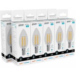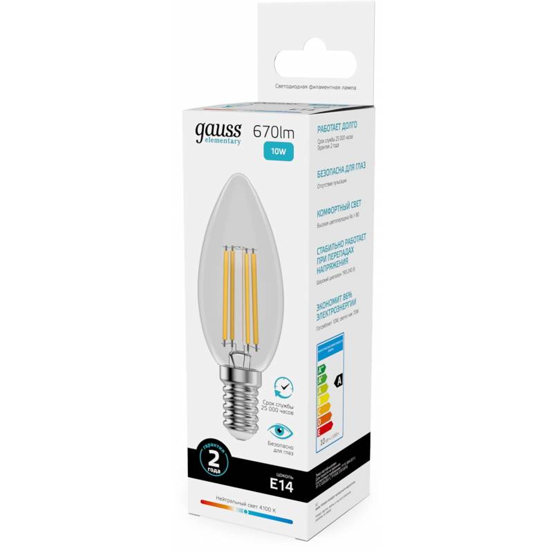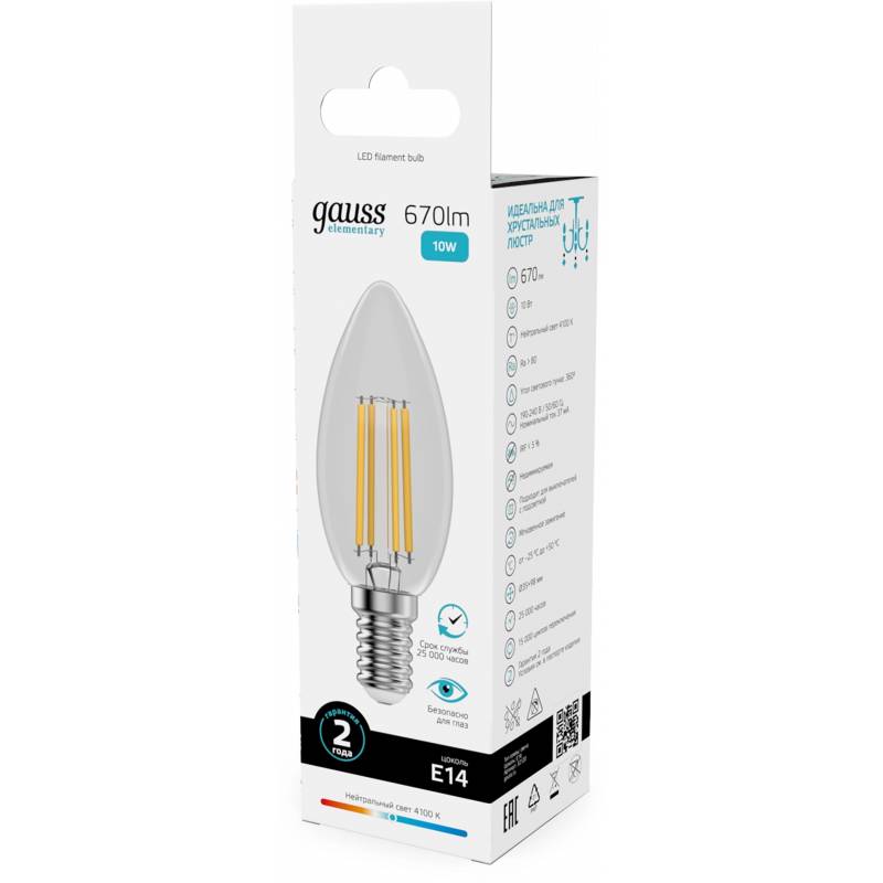 Лампа филам. Gauss Filament 10Вт цок.:E14 свеча 220B св.свеч.бел.нейт. (упак.:10шт) (32120)