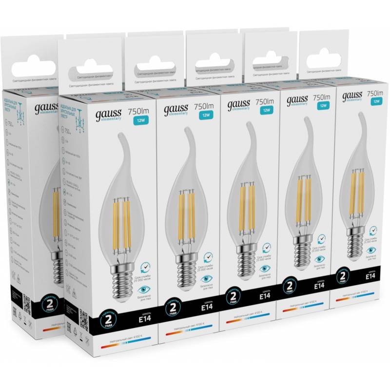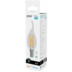 Лампа филам. Gauss Filament 12Вт цок.:E14 свеча 220B св.свеч.бел.нейт. (упак.:10шт) (42122)