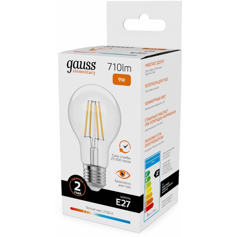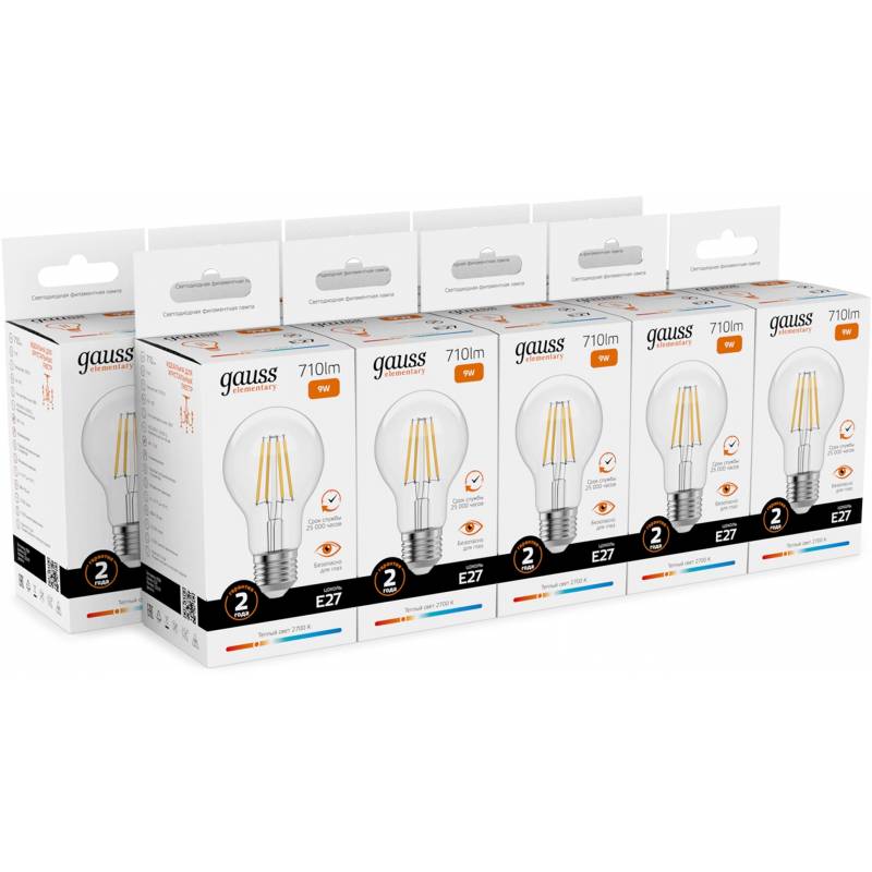 Лампа филам. Gauss Filament 9Вт цок.:E27 груша 220B св.свеч.бел.теп. (упак.:10шт) (22219)