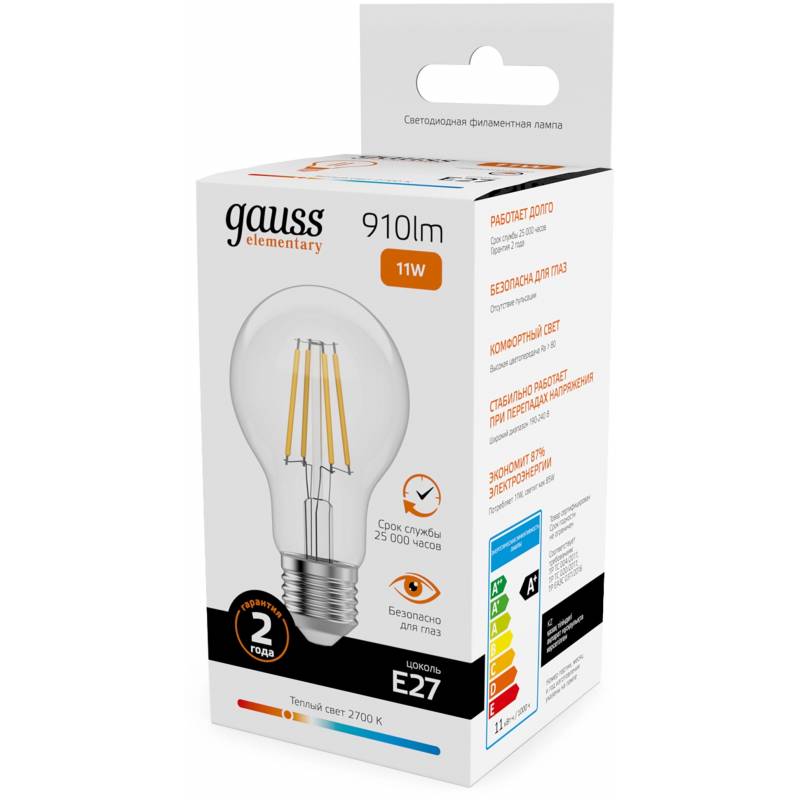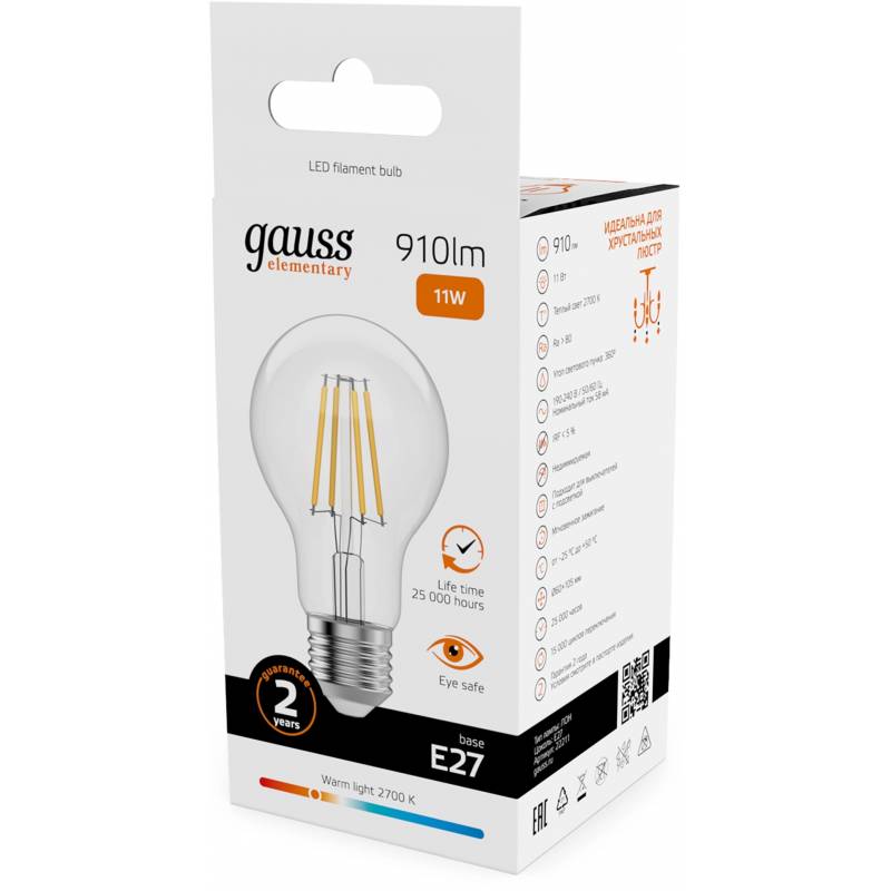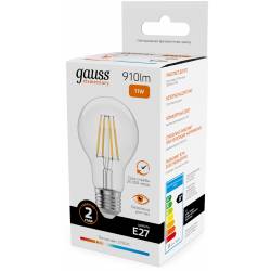 Лампа филам. Gauss Filament 11Вт цок.:E27 груша 220B св.свеч.бел.теп. (упак.:10шт) (22211)