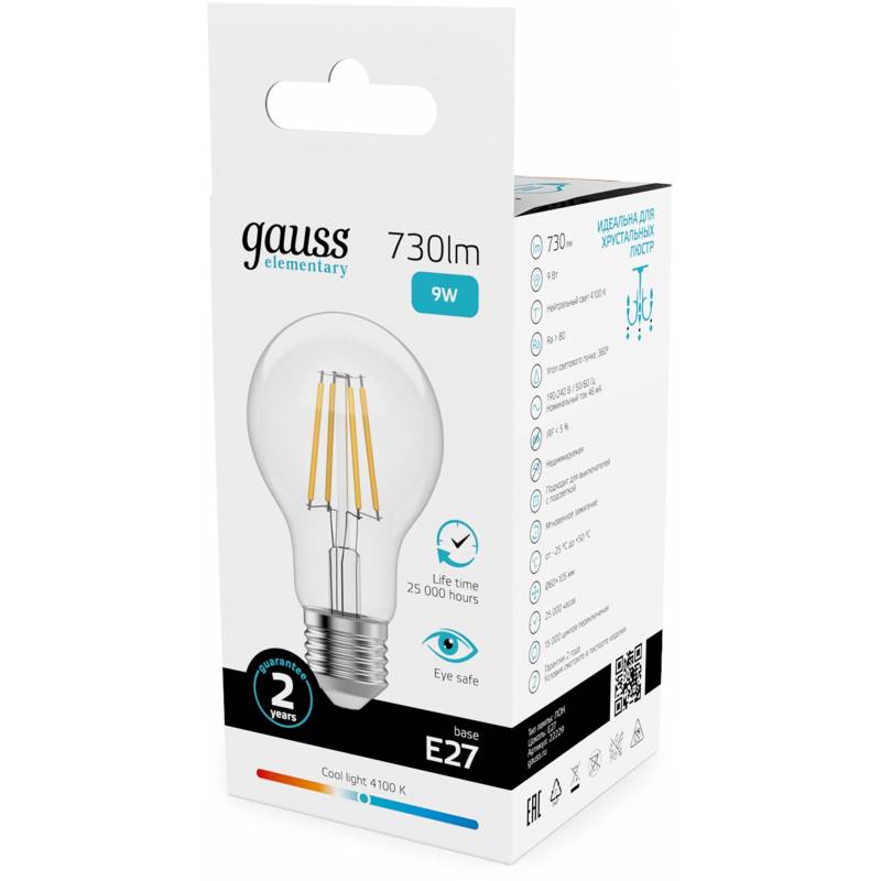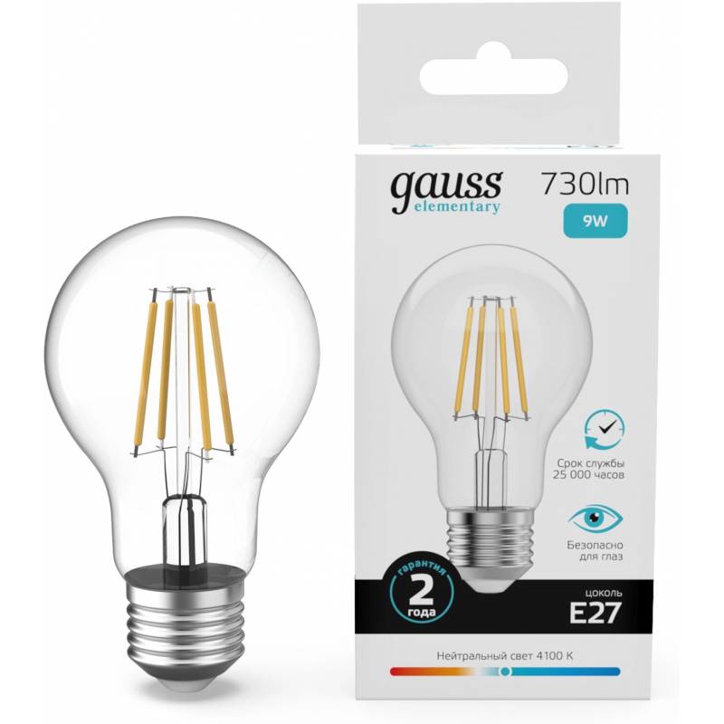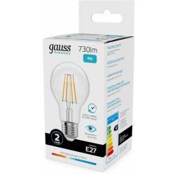 Лампа филам. Gauss Filament 9Вт цок.:E27 груша 220B св.свеч.бел.нейт. (упак.:10шт) (22229)