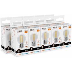 Лампа филам. Gauss Filament 8Вт цок.:E27 шар 220B св.свеч.бел.теп. (упак.:10шт) (52218)