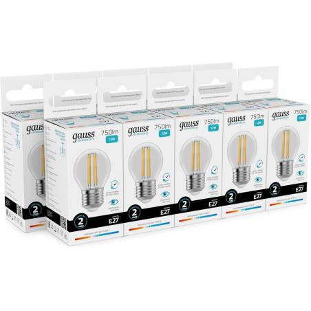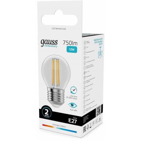 Лампа филам. Gauss Filament 12Вт цок.:E27 шар 220B св.свеч.бел.нейт. (упак.:10шт) (52222)