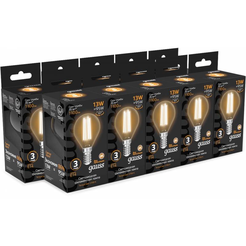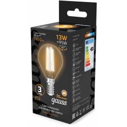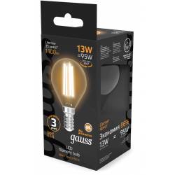Лампа филам. Gauss Filament 13Вт цок.:E14 шар 220B св.свеч.бел.теп. (упак.:10шт) (105801113)