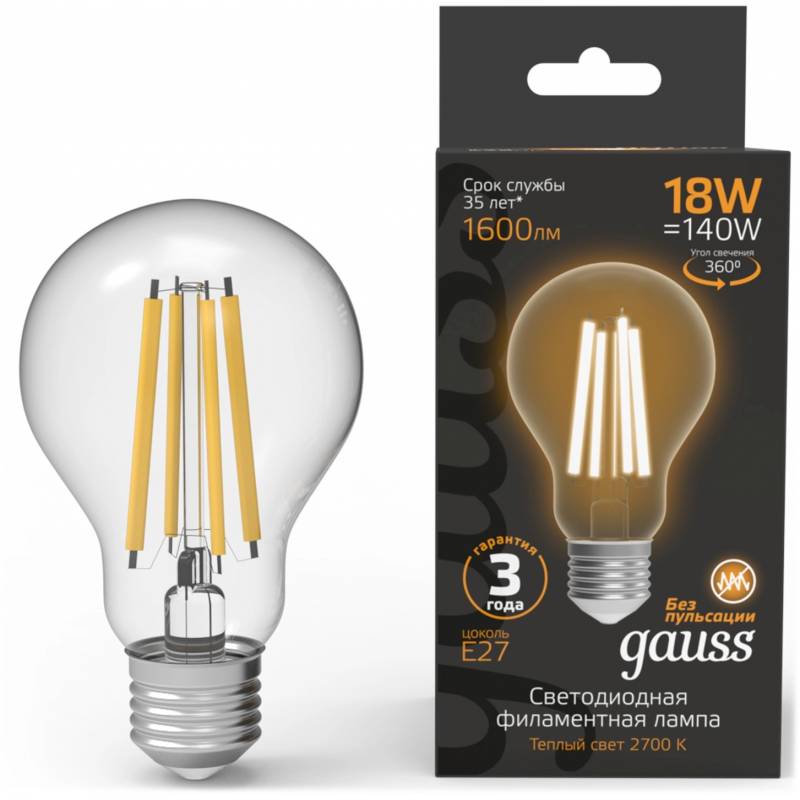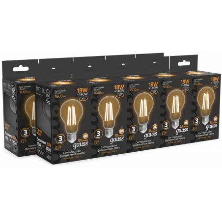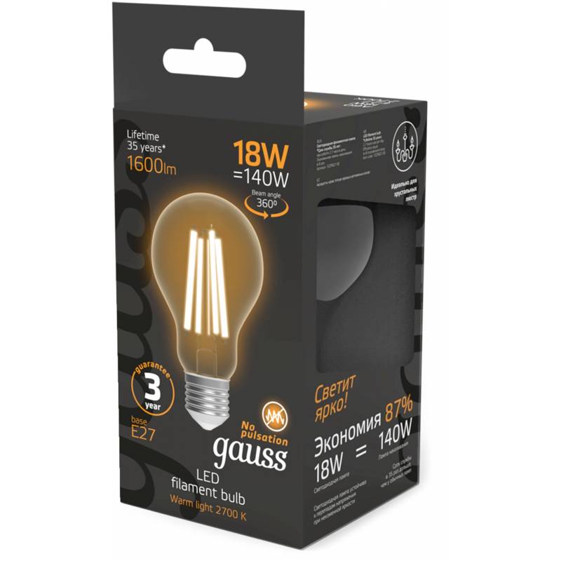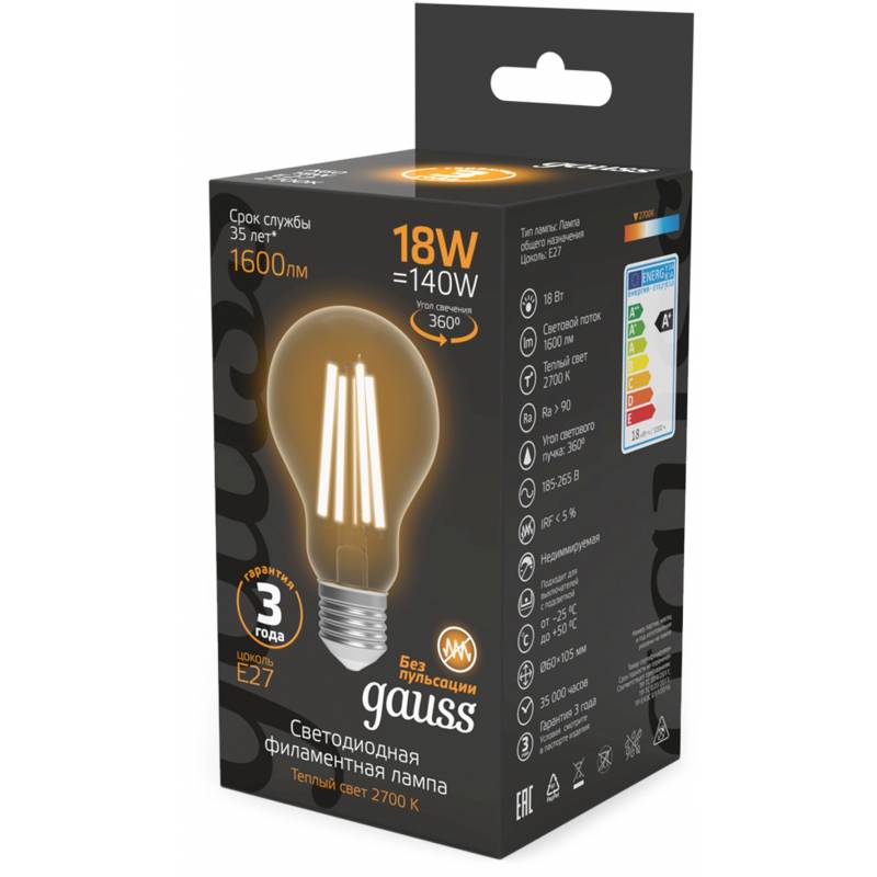 Лампа филам. Gauss Filament 18Вт цок.:E27 груша 220B св.свеч.бел.теп. (упак.:10шт) (102902118)