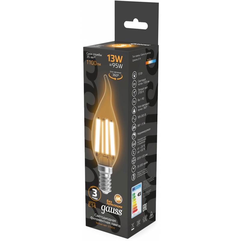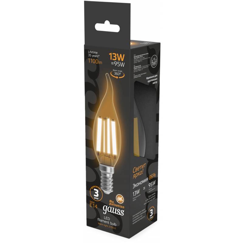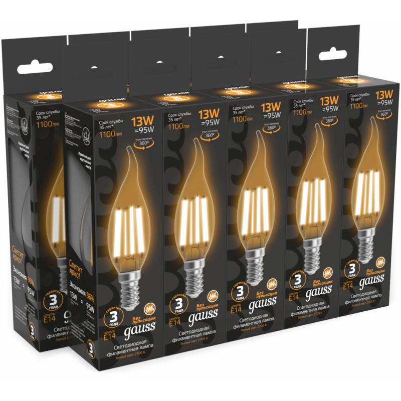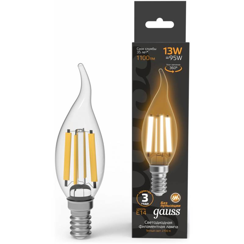 Лампа филам. Gauss Filament 13Вт цок.:E14 свеча 220B св.свеч.бел.теп. (упак.:10шт) (104801113)