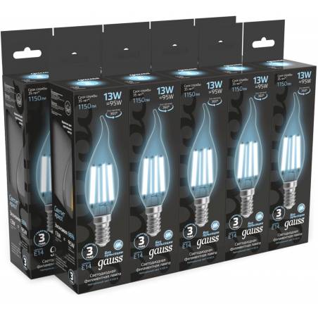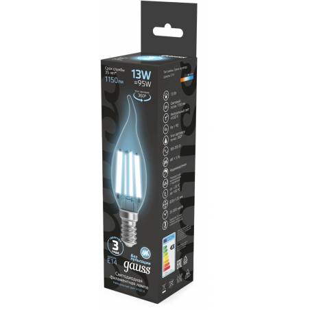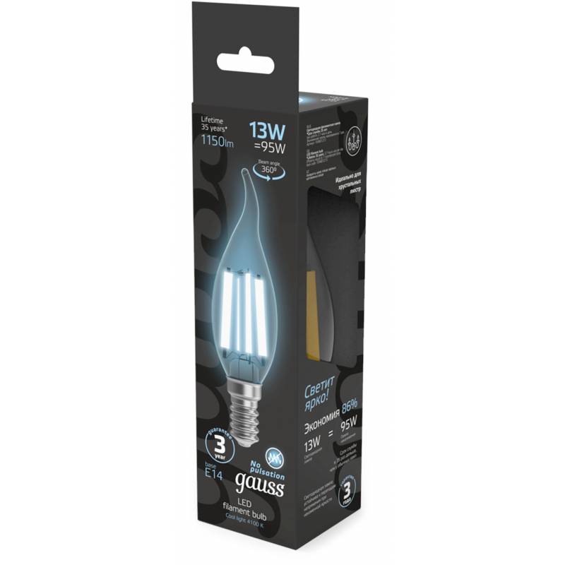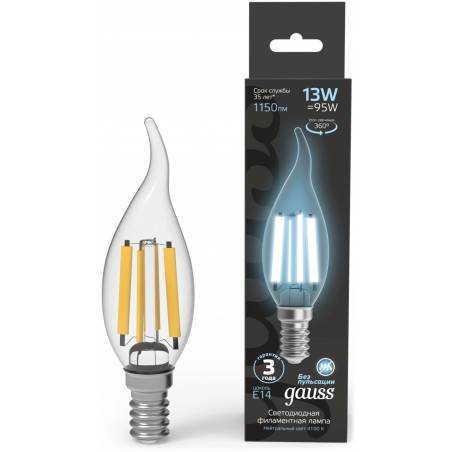 Лампа филам. Gauss Filament 13Вт цок.:E14 свеча 220B св.свеч.бел.нейт. (упак.:10шт) (104801213)