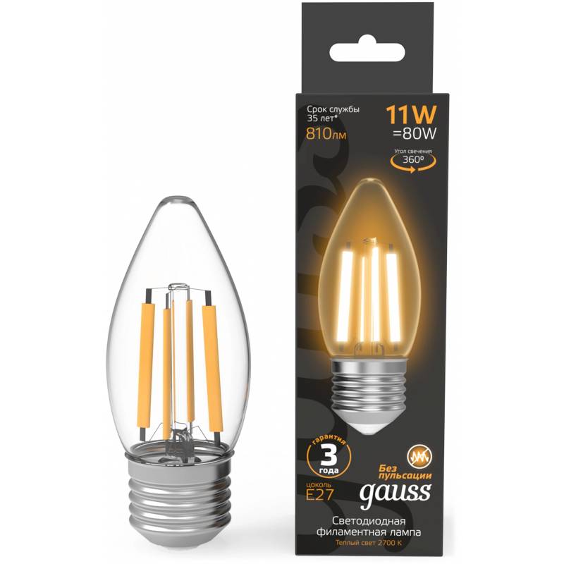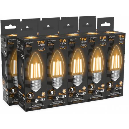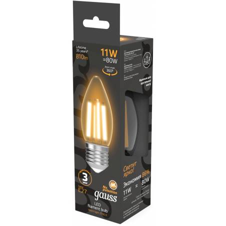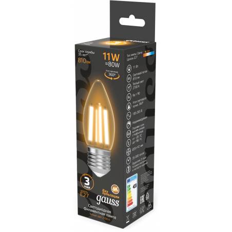 Лампа филам. Gauss Filament 11Вт цок.:E27 свеча 220B св.свеч.бел.теп. (упак.:10шт) (103802111)