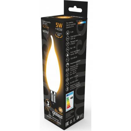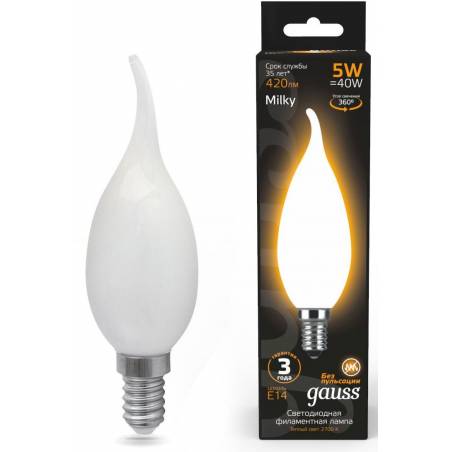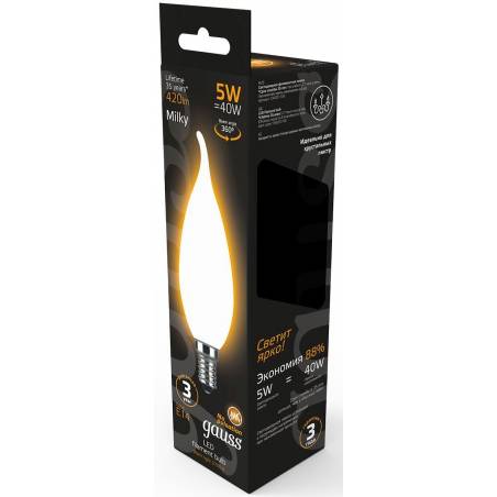 Лампа филам. Gauss Filament 5Вт цок.:E14 свеча 220B 2700K св.свеч.бел.теп. (упак.:1шт) (104201105)