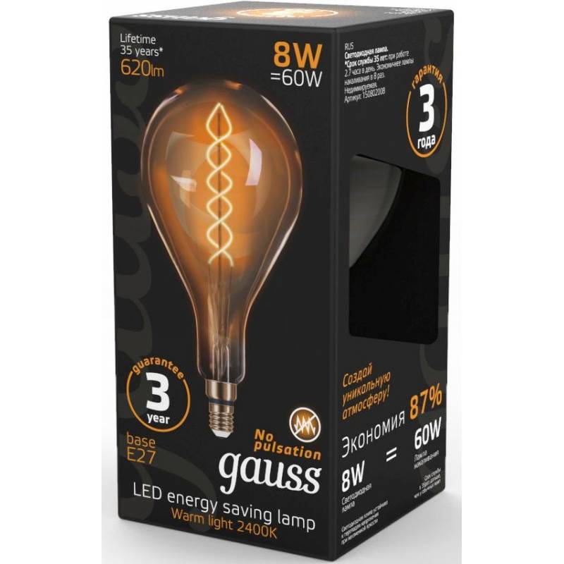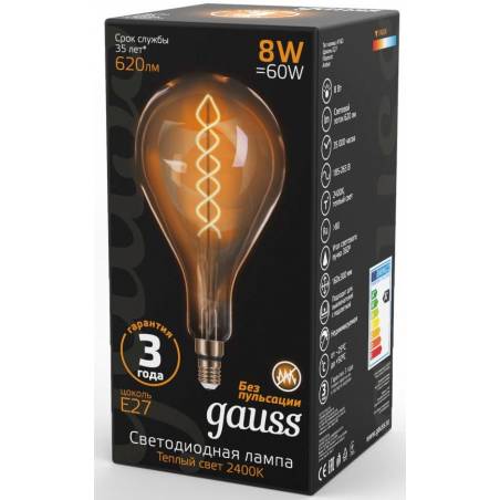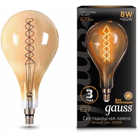 Лампа филам. Gauss Filament Vintage 8Вт цок.:E27 шар 220B 2400K св.свеч.бел.теп. (упак.:1шт) (150802008)