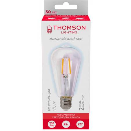 Лампа филам. Thomson Filament TH-B2342 9Вт цок.:E27 эдисон 220B 6500K св.свеч.бел.хол. ST64 (упак.:1шт)