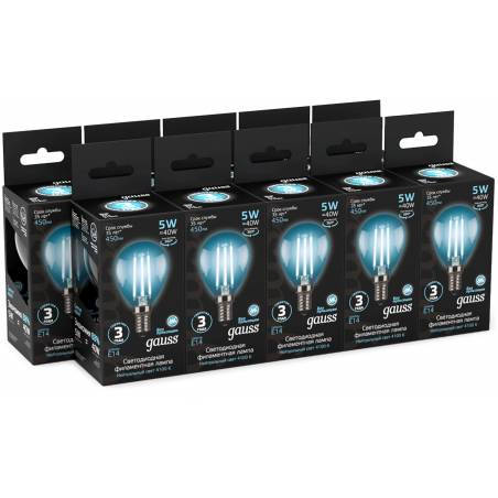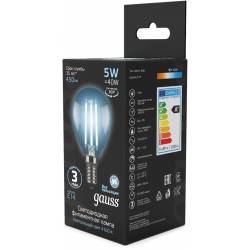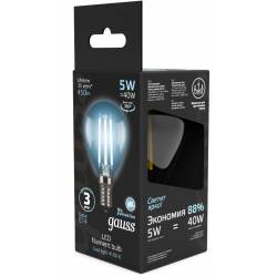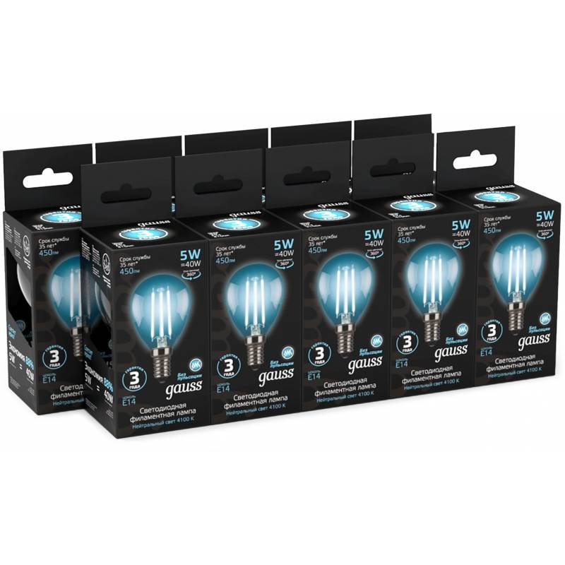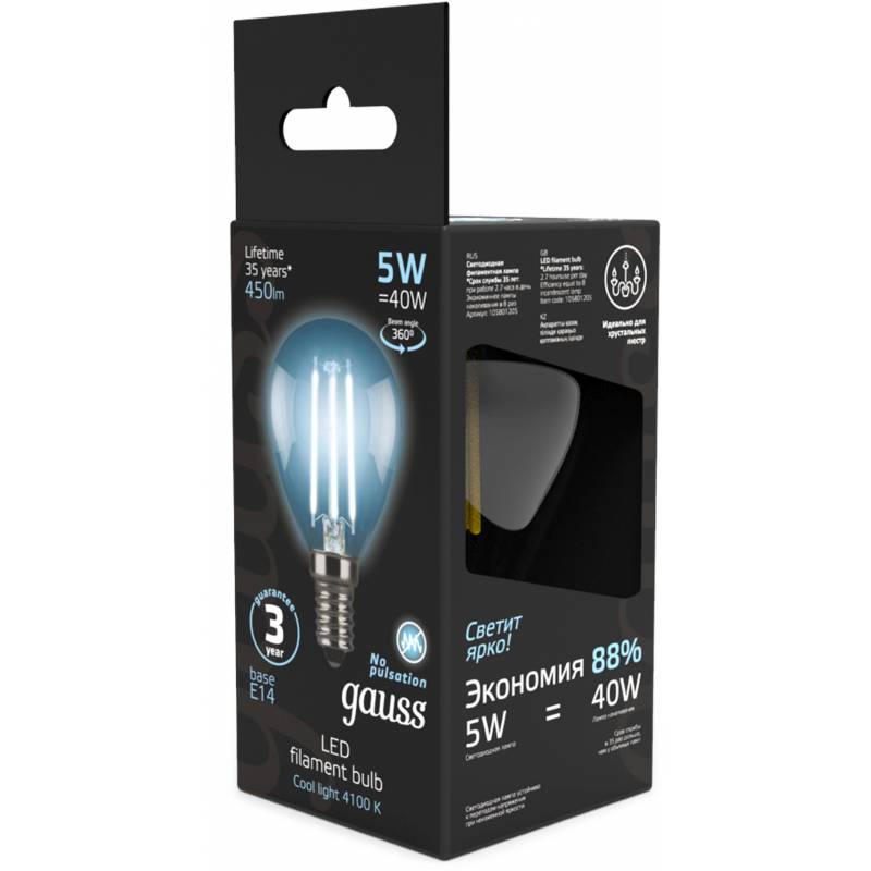 Лампа филам. Gauss Filament 5Вт цок.:E14 свеча 220B св.свеч.бел.нейт. (упак.:10шт) (105801205)