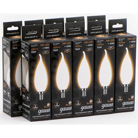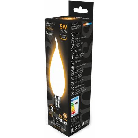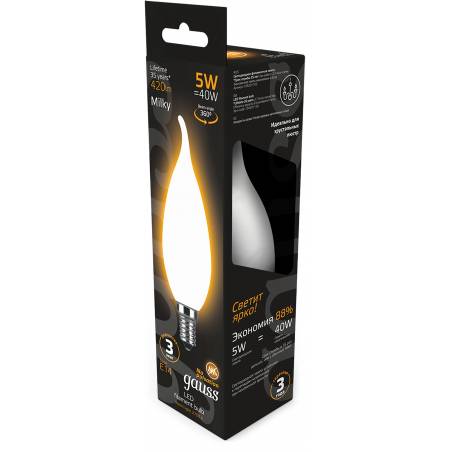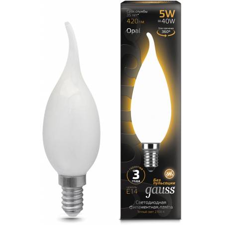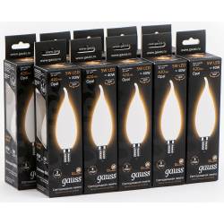 Лампа филам. Gauss Filament 5Вт цок.:E14 свеча 220B св.свеч.бел.теп. (упак.:10шт) (104201105)