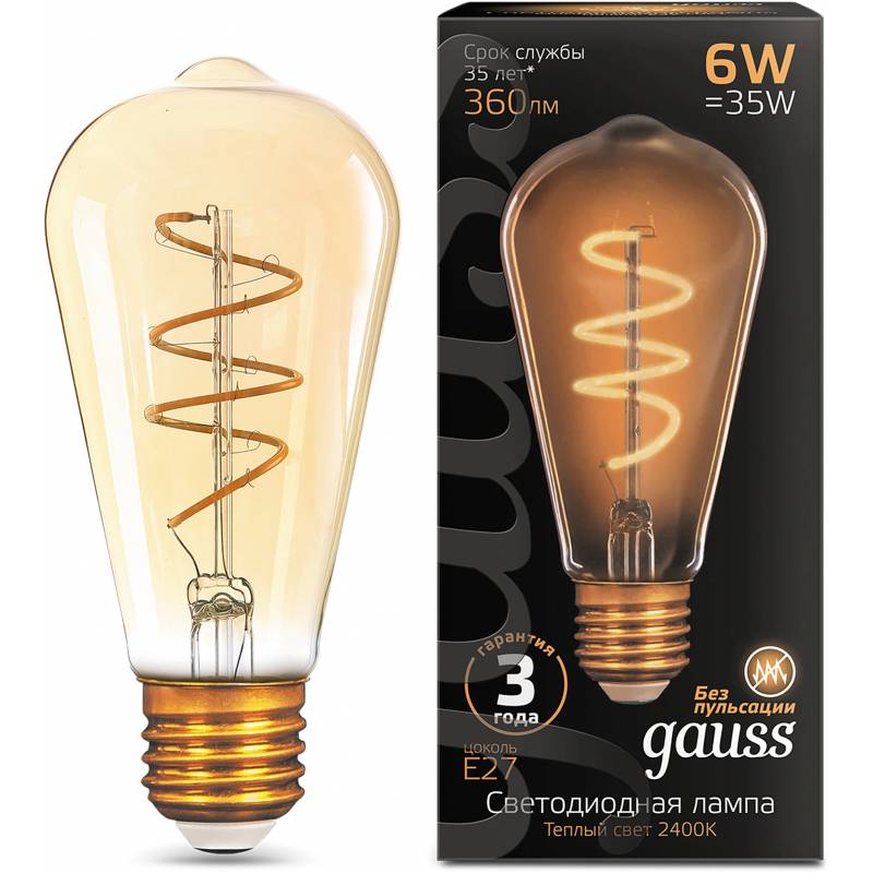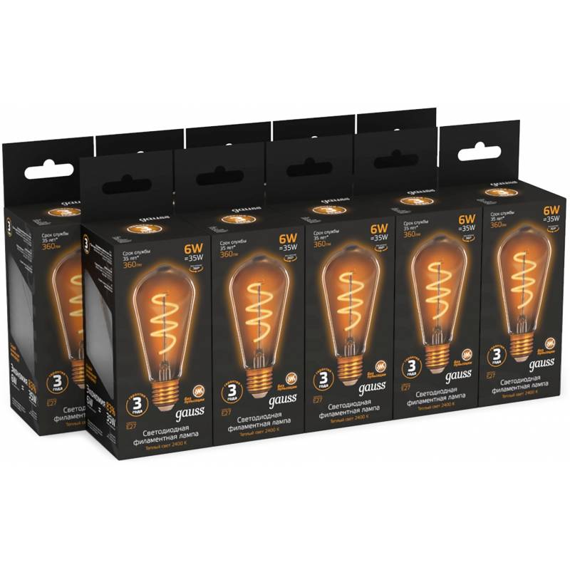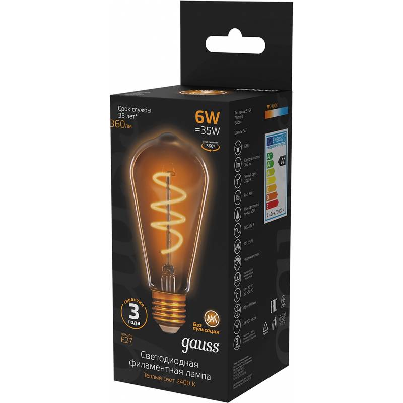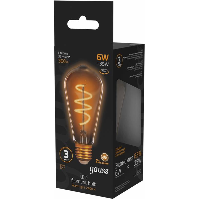 Лампа филам. Gauss Filament ST64 6Вт цок.:E27 эдисон 220B св.свеч.бел.теп. (упак.:10шт) (157802006)