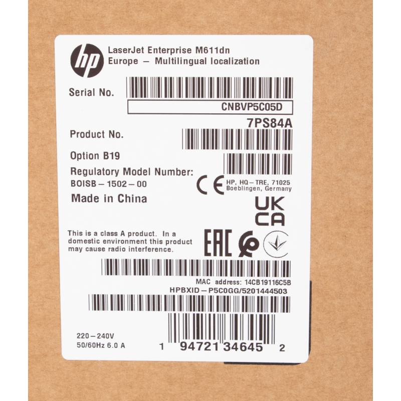 - Принтер HP LaserJet Enterprise M611dn; оригинальный лазерный картридж HP LaserJet, черный (ресурс 10 500 страниц); документация (руководство по установке оборудования, листовка с информацией о соответствии нормативным требованиям; кабель питания.