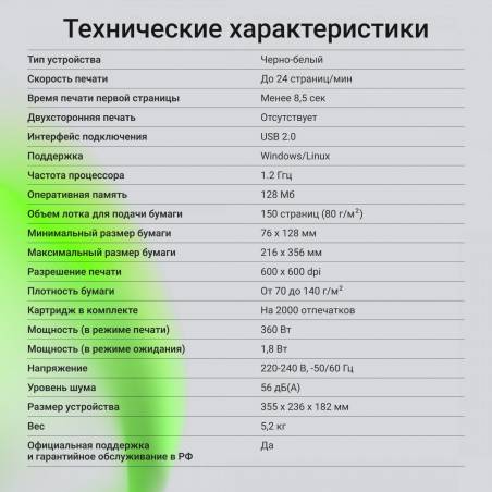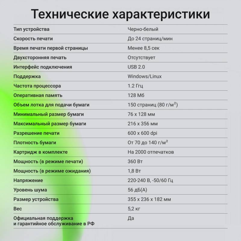 - Стартовый картридж в комплекте