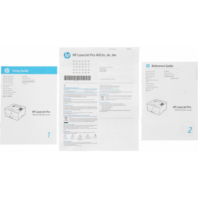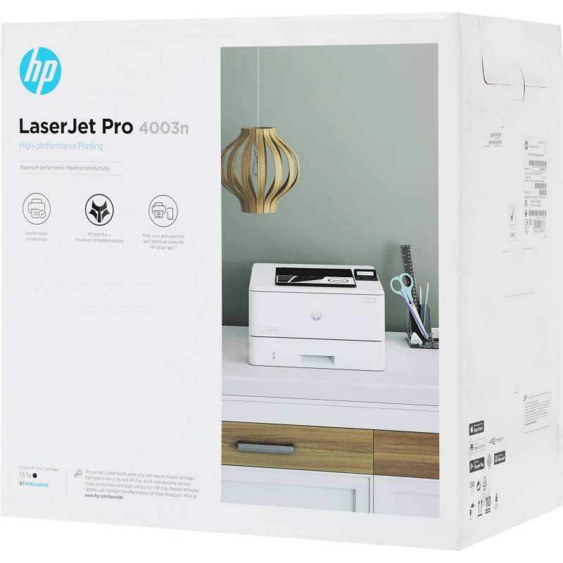 - 2Z611A Принтер HP LaserJet Pro 4003n; предустановленный оригинальный лазерный картридж для HP LaserJet, черный (2900 страниц); руководство по началу работы; листовка с информацией о поддержке; руководство по гарантии; листовка с нормативнымитребованиями;